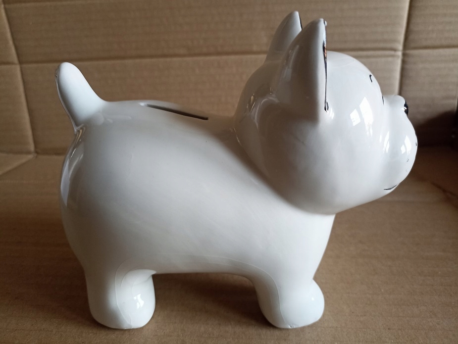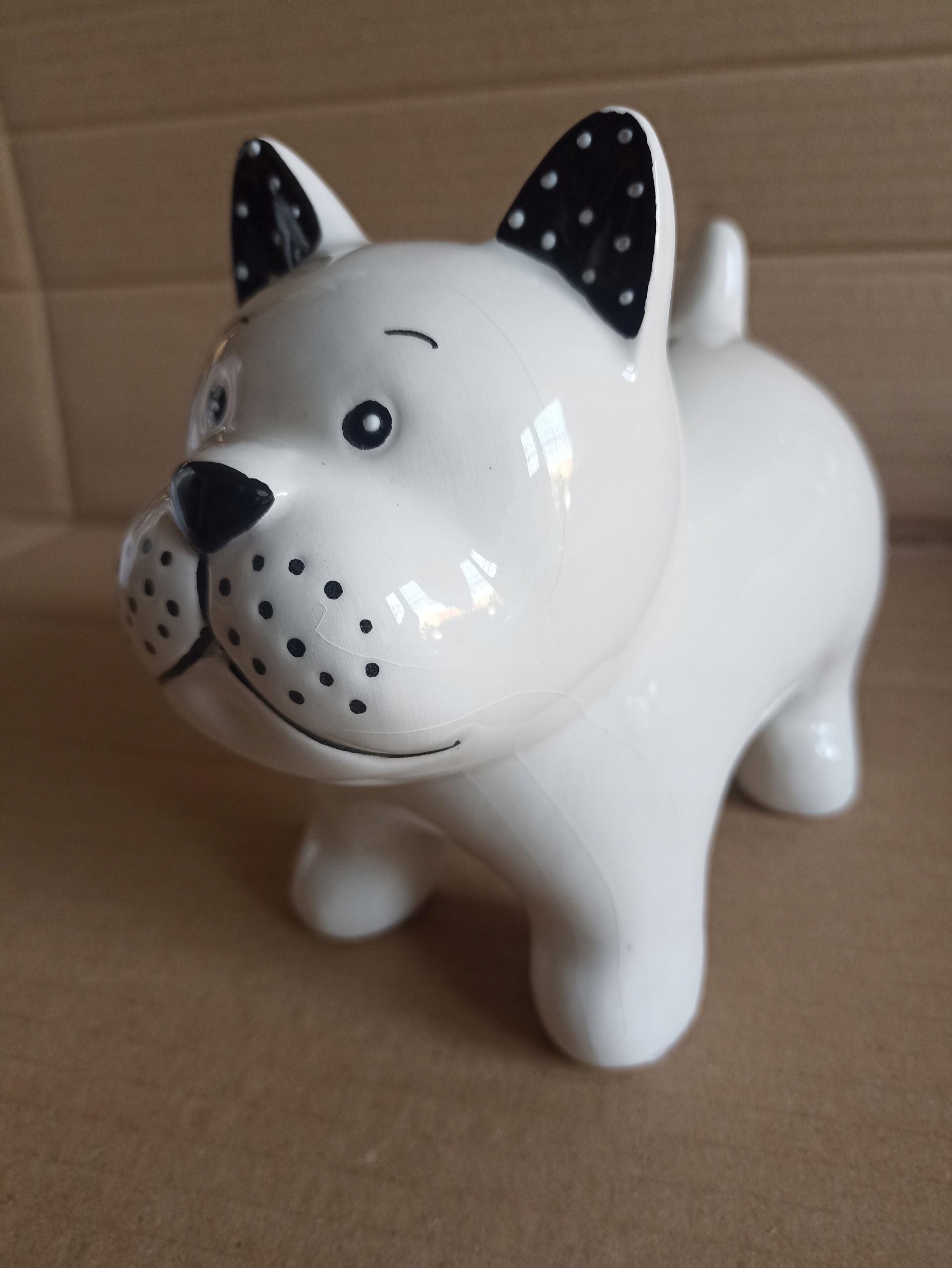 Статуэтка-копилка «Собака» в белом и черном цвете, из керамики.