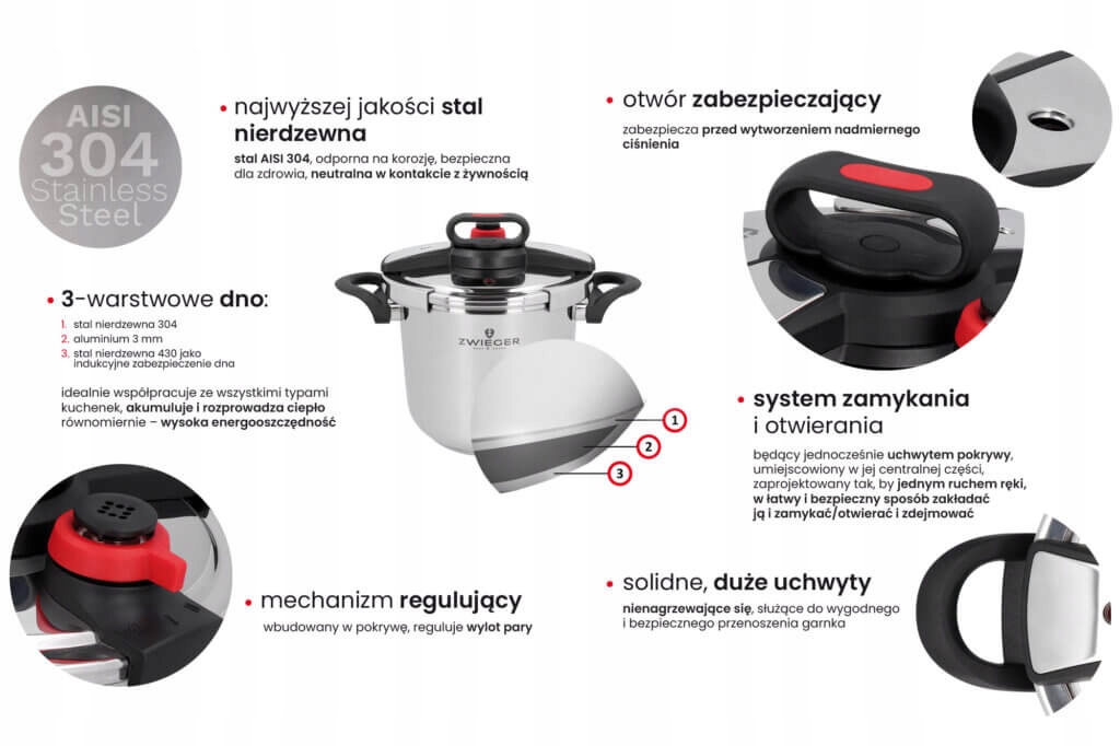 ✅Кастрюля-скороварка Klassiker от Zwieger, изготовленная из высококачественной нержавеющей стали AISI 304, является идеальным решением для всех, кто хочет сэкономить время на кухне, не теряя при этом качества готовой продукции. готовые блюда