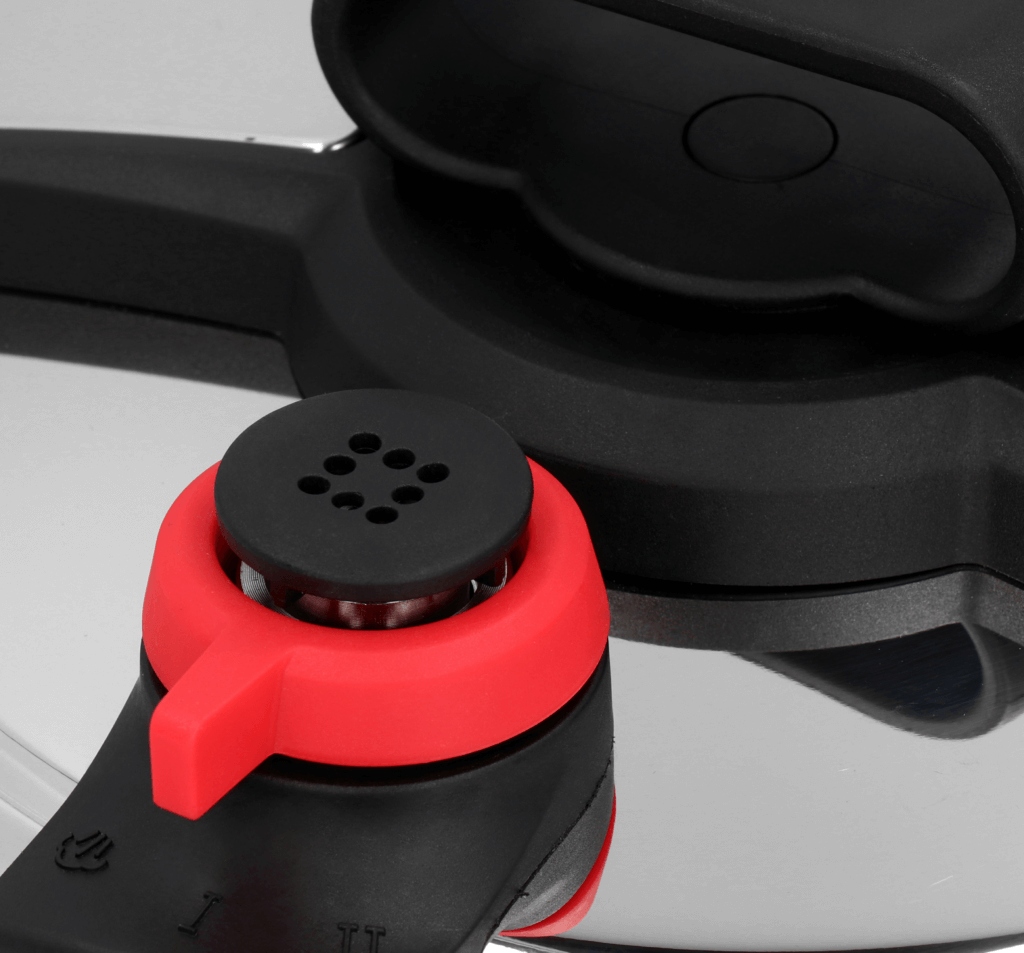 <ул>✅Механизм, регулирующий выход пара и защищающий от чрезмерного давления, встроен в прочную крышку из стали AISI 304. Рядом с ним, в центральной части крышки, расположена ручка, которая также является элементом системы закрывания и открывания сосуда. Она создана для того, чтобы легко и безопасно надевать и снимать крышку одним движением руки.