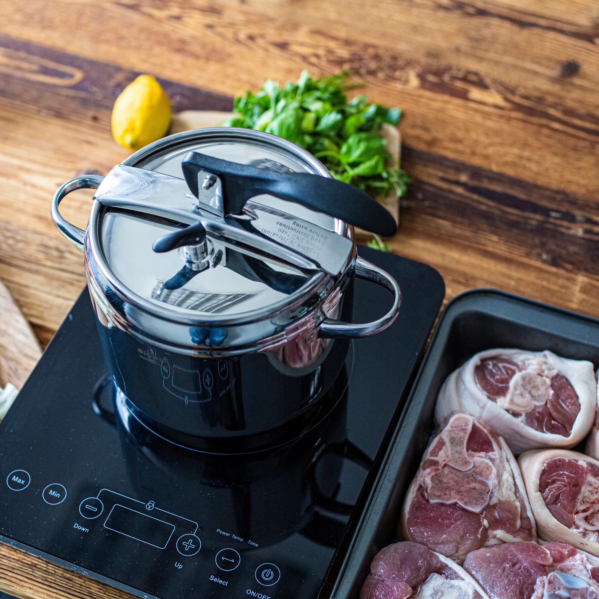 Скороварка подходит для всех типов плит: индукционных, газовых, керамических, электрических и галогенных.