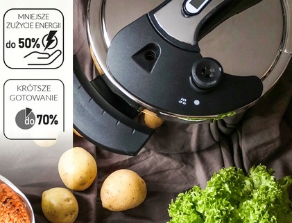 Экономия - В скороварке вы приготовите блюда гораздо быстрее. Высокое давление и температура внутри кастрюли сокращают процесс приготовления до 70 % по сравнению с обычной кастрюлей. Это также приводит к снижению потребления энергии до до 50 % по сравнению с традиционным методом.