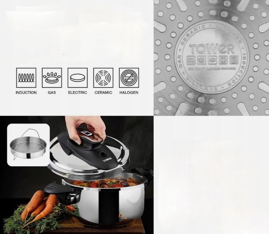 Сохраняйте витамин С в своих блюдах с помощью этой универсальной скороварки One-Touch Ultima от Tower. Корпус из высококачественной нержавеющей стали емкостью 4 литра подходит для приготовления блюд для всей семьи или порционного приготовления. Входящая в комплект корзина для пароварки рассеивает тепло под высоким давлением, что позволяет тщательно готовить пищу только на пару. Уникальный механизм вращения крышки разработан для простого управления одной рукой, сохраняя все основные питательные вещества и минералы из продуктов, включая овощи, мясо и рыбу. Крышка оснащена съемным 60-минутным таймером, который позволяет вам планировать и контролировать желаемое время приготовления во время перемещения по дому. Боковые ручки из фенольного материала, не нагревающиеся во время приготовления пищи, обеспечивают удобный захват и облегчают переноску между кухонными столешницами. Клапан выпуска пара, который снижает давление в приборе в конце цикла приготовления, заботится обо всех аспектах безопасности.