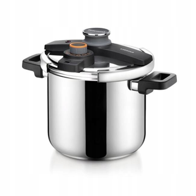 Скороварка имеет индикатор давления в кастрюле, 4 предохранительных устройства и эргономичные ручки. Скороварка изготовлена из высококачественной нержавеющей стали и прочного пластика.