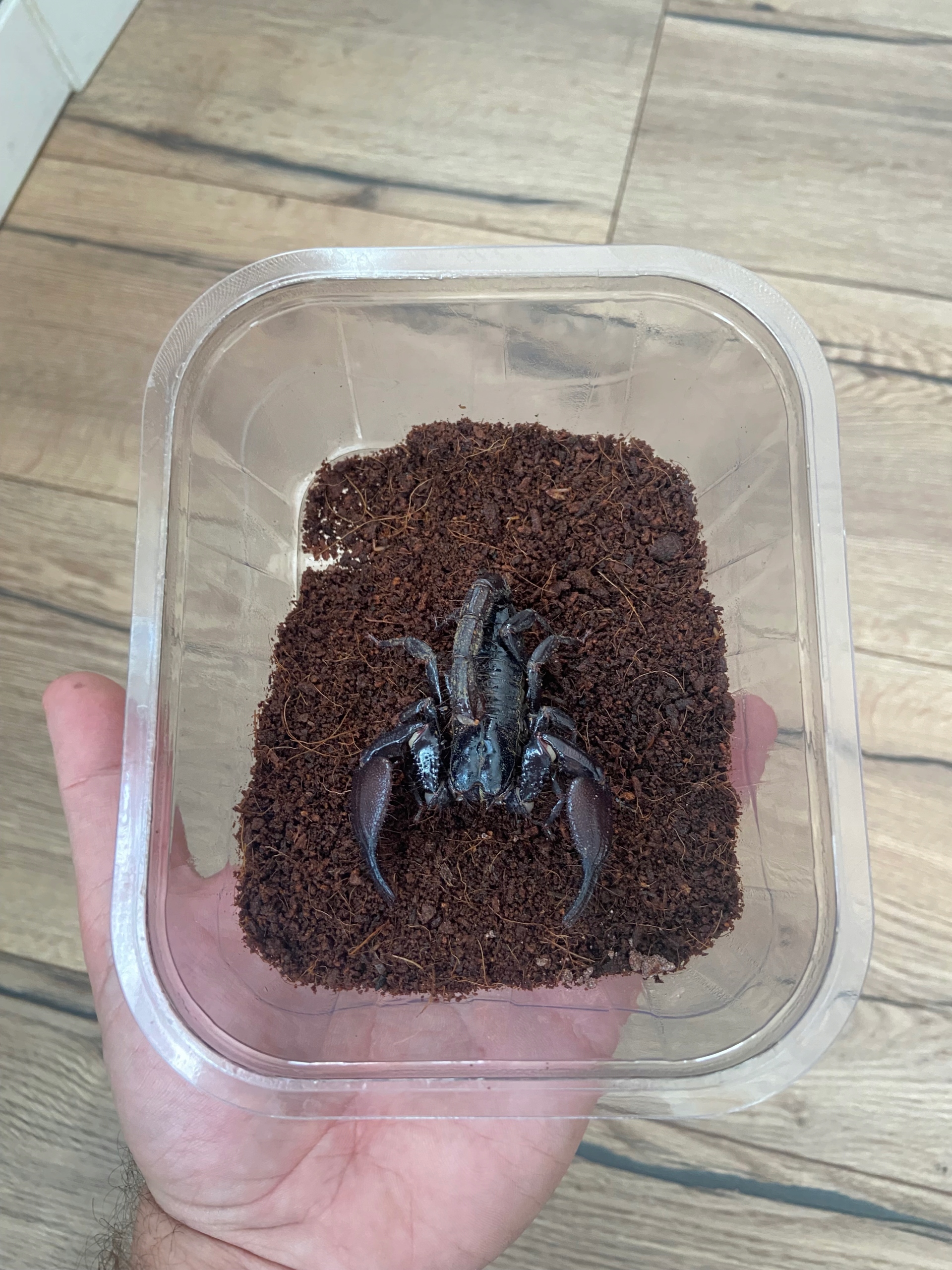 Продаются щенки J.cyaneus l2. Идеальный скорпион для начала. Слегка ядовит и устойчив к насекомым. Кормим маленькими тараканами и сверчками.