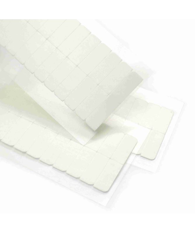 Ленты изготовлены из прочнейшего клея и препараты, придающие им высокую гибкость. Гипоаллергенный продукт. Ленты продаются в листах по 12 лент размером 4х0,8 см. Ленты двусторонние.