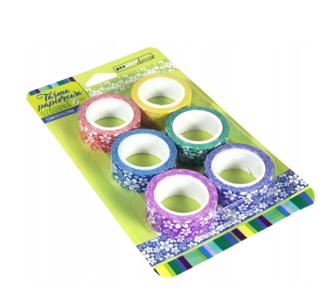 НАБОР БУМАЖНОЙ ДЕКОРАТИВНОЙ ЛЕНТЫ С ЦВЕТАМИ 15ММ 5М 6 ЦВЕТОВ
