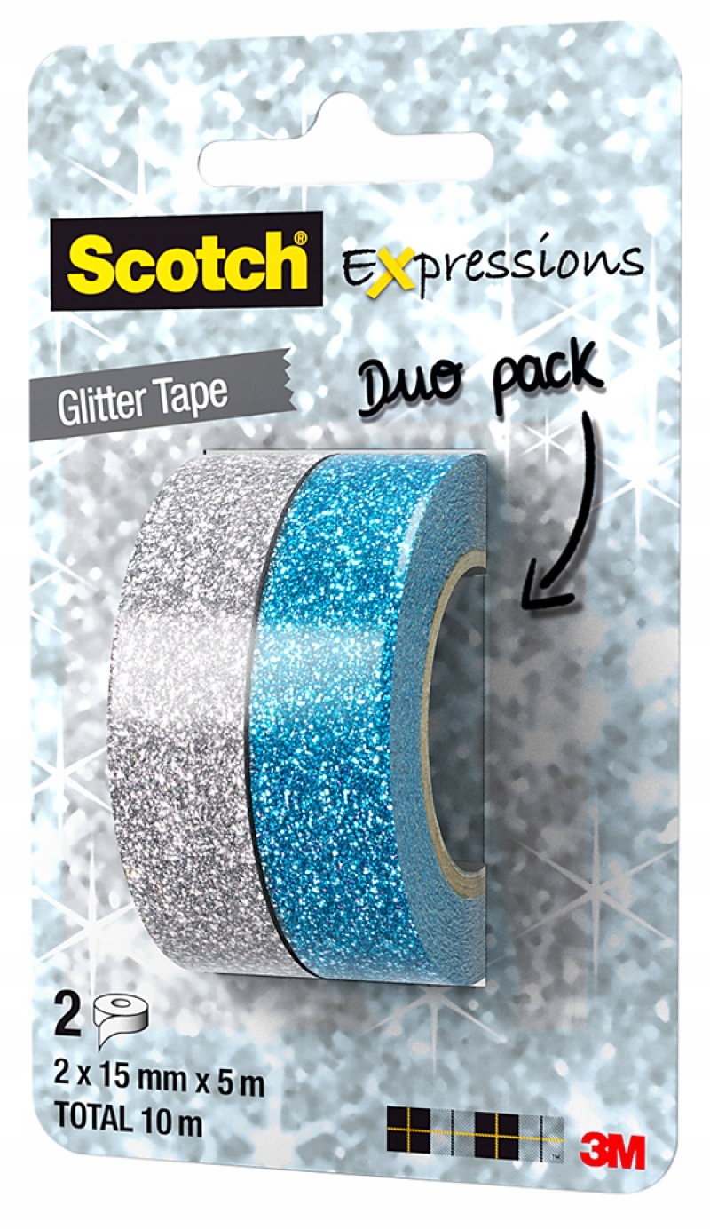 - Пакет содержит 2 скотчи ® Экспрессионные ленты в: серебро и синий, размером 15 мм x 5m