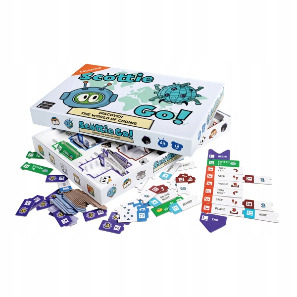 <ул>Скотти, вперед! ЭДУ состоит из приложений и картонных блоков. Содержит 91 задание с возрастающим уровнем сложности. Специально разработанные блоки используются для изучения программирования и развития математических навыков. Студенты используют их для создания программ, которые инопланетянин Скотти будет выполнять в приложении. Каждая программа начинается с блока START и заканчивается блоком END. Между ними ученик вставляет блоки с командами, некоторые из которых требуют добавления параметра, например, количества шагов, которые должен пройти герой. Блоки также позволяют взаимодействовать с дополнительными персонажами и объектами. Работая с игрой, учащиеся могут освоить основные концепции программирования, такие как: