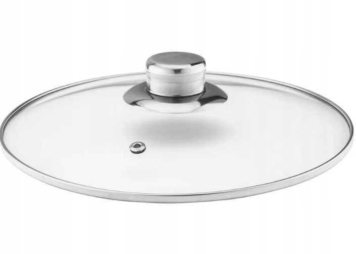 - Стеклянная крышкаидеально прилегает к кастрюле. Имеет отверстие для выхода пара.