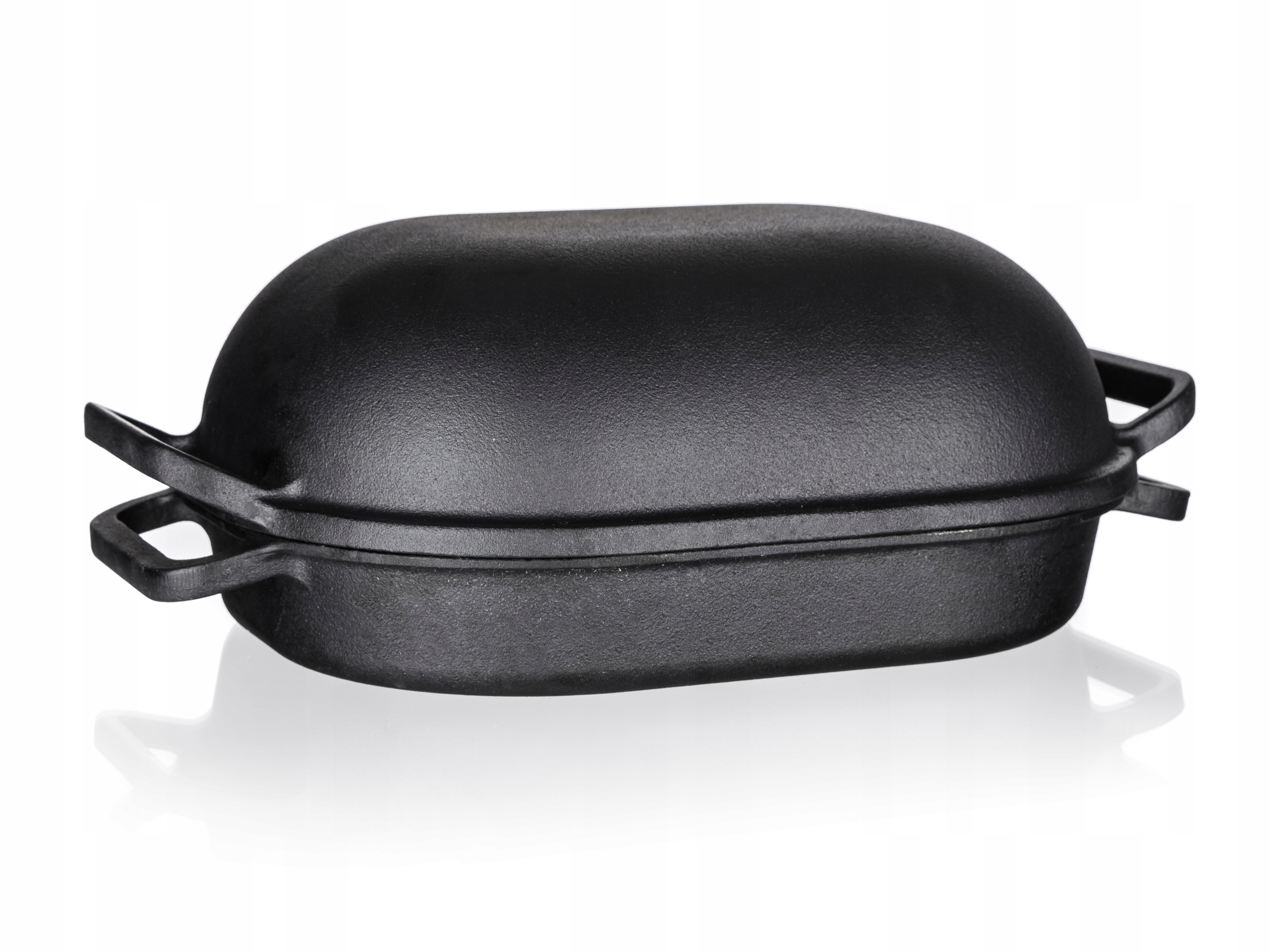 ОТЛИЧНАЯ овальная чугунная сковорода с крышкой, объем 3 + 4 л, размеры 39 х 26 х 14 см, черная. Чугунная форма для запекания прекрасно подходит для запекания и запекания в духовке, а также для варки, тушения и жарки на плите. Чугун идеально подходит для приготовления пищи и выпечки. Твердый материал, который долго сохраняет тепло после нагрева и распределяет его равномерно, позволяя пище готовиться равномерно, в более короткие сроки и более экономно на чугунной сковороде. Перед первым использованием смажьте поверхность сковороды растительным маслом и постепенно начинайте нагревать ее в духовке (начинайте с слабого огня и постепенно увеличивайте температуру). За счет подрумянивания масла продукт приобретает антипригарные свойства.