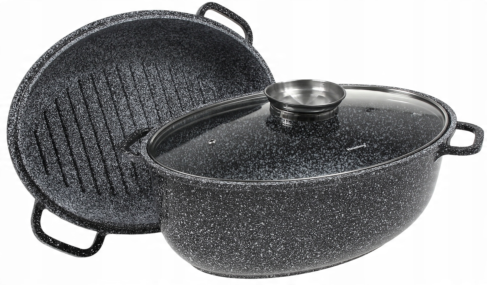 Качественная овальная жаровня из литого алюминия обеспечивает здоровое приготовление блюд.