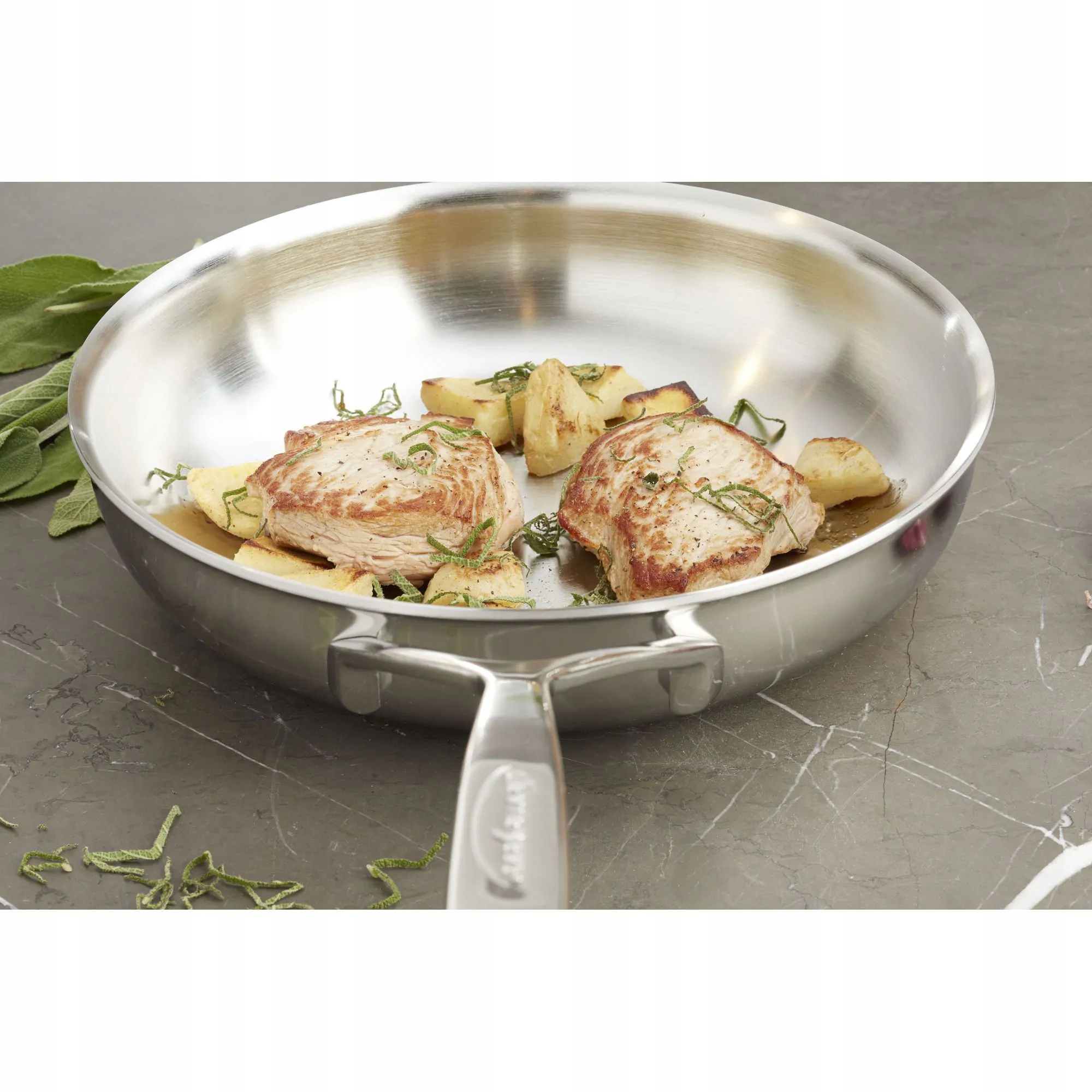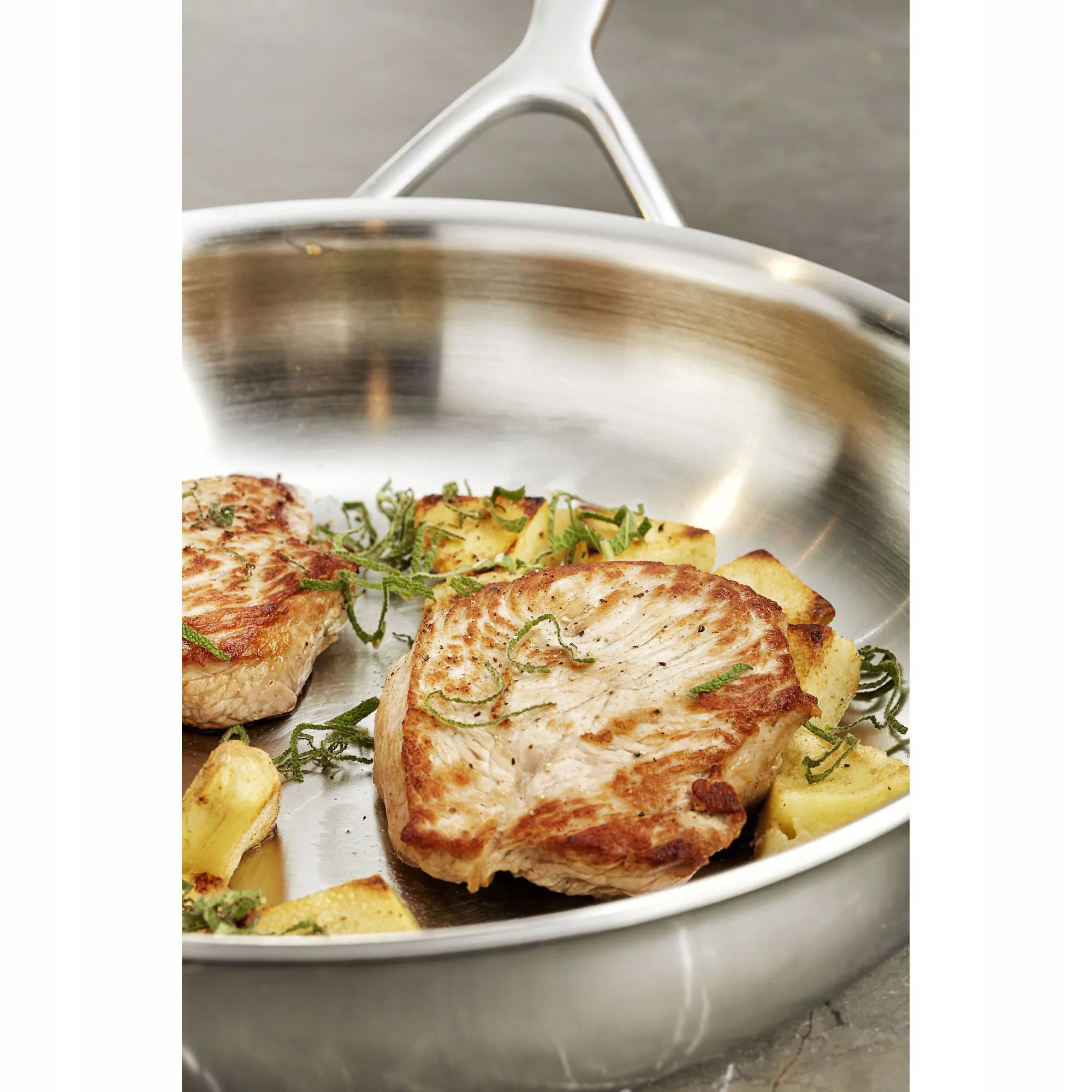 7-слойная нержавеющая сталь в сочетании с алюминием обеспечивает быстрое и равномерное распределение температуры. Для облегчения работы сковорода оснащена удобной удобной ручкой, которая сохраняет приятную прохладу даже при высоких температурах. Специальное покрытие Silvinox®, которое является практически визитной карточкой бренда Demeyere, позволяет легко и быстро чистить, предотвращает изменение цвета и появление отпечатков пальцев, придавая посуде серебристый блеск.