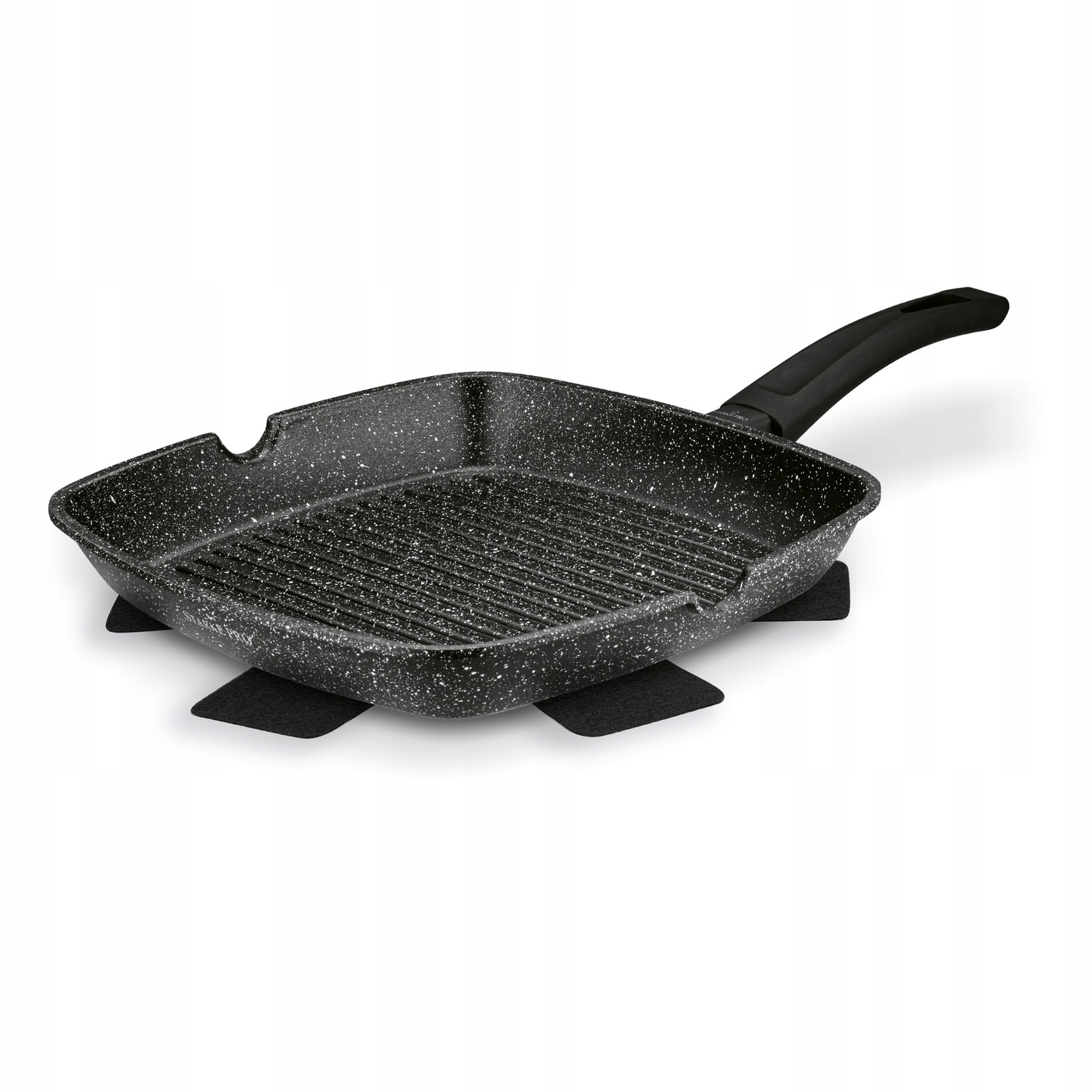 Индукционная сковорода-гриль Starke Pro Chelsea диаметром 28 см из мрамора и гранита изготовлена из алюминия. Для его создания использовалась технология гомогенного литья под давлением. Благодаря этому он идеально сбалансирован и очень прочен с точки зрения механических и термических свойств. Антипригарное покрытие также обеспечивает повышенную долговечность. Внутренняя часть сковороды отделана мраморным покрытием GREBLON C3, обогащенным гранитными частицами. Его высокое качество, отличная адгезия, твердость и трехслойная структура разработаны немецкой компанией WEILBURGER. Он также имеет маркировку PFOA Free. Энергоэффективность обеспечивается индукционным дном толщиной 3,8 мм. Благодаря этому вы можете использовать мраморную сковороду-гриль Chelsea диаметром 28 см на любой плите. Антипригарное покрытие также позволяет жарить с небольшим количеством жира и упрощает уход. Она выдерживает до 8000 циклов истирания, что в четыре раза больше, чем у обычных сковородок с антипригарным покрытием, доступных на рынке. Переносить и использовать модель облегчает ручка Soft Touch, которая не нагревается и не выскальзывает из руки. Специальное тиснение дна позволит добиться эффекта жарки ингредиентов. Два носика помогут избавиться от лишнего вытопленного жира. С его помощью вы создадите свой собственный набор кухонной посуды серии «Челси». Он идеально подходит для домашнего использования. В комплект также входит фетровая подушечка, на которую можно безопасно поставить горячую сковороду, например, на столешницу или стол. Более того, вы можете использовать этот элемент в качестве прокладки между хранимыми кастрюлями.