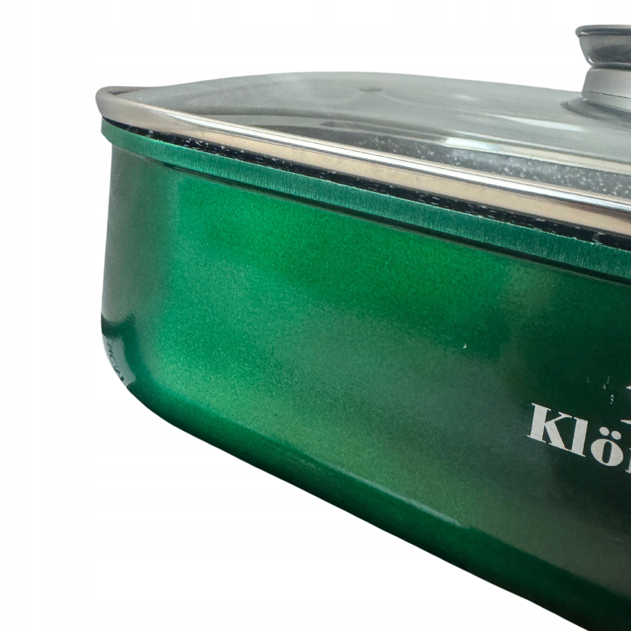 Зеленое блестящее внешнее покрытие не только красиво выглядит, но и устойчиво к высоким температурам, его легко содержать в чистоте.