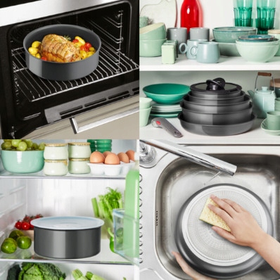 Фирменная ручка TEFAL для всех Посуда, сковороды и кастрюли TEFAL Ingenio из бакелита удобны для приготовления или жарки нескольких блюд одновременно.