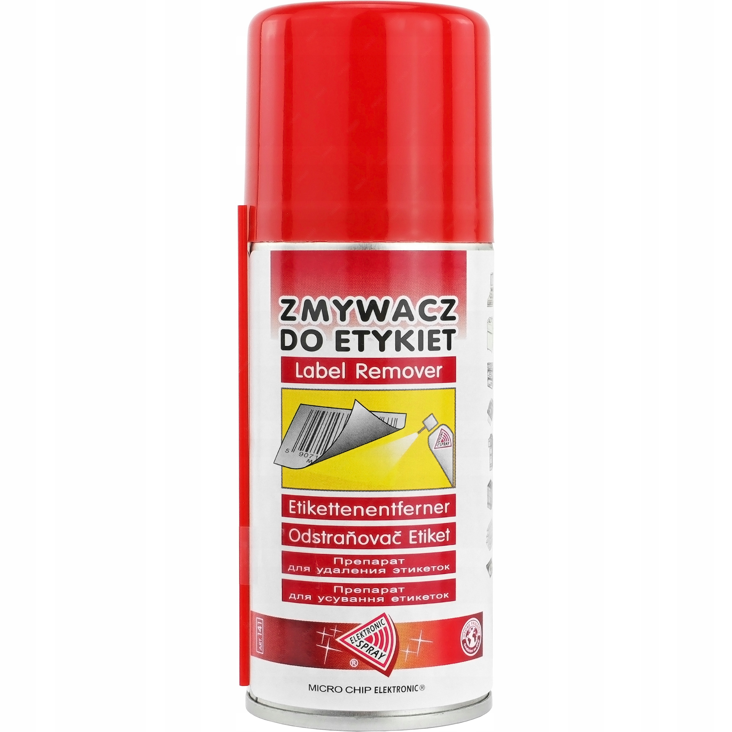 Подготовка аэрозоля для быстрого удаления самоадгезивных меток, наклеек и клейких остатков.