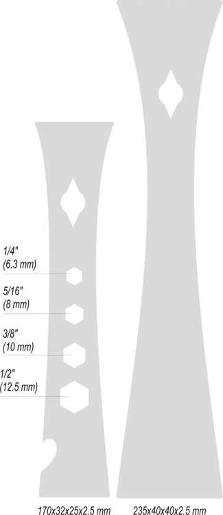Металлические скребки L-образного типа. Изготовлены из нержавеющей стали. В комплект входят 2 детали толщиной 2,5 мм и размерами:
