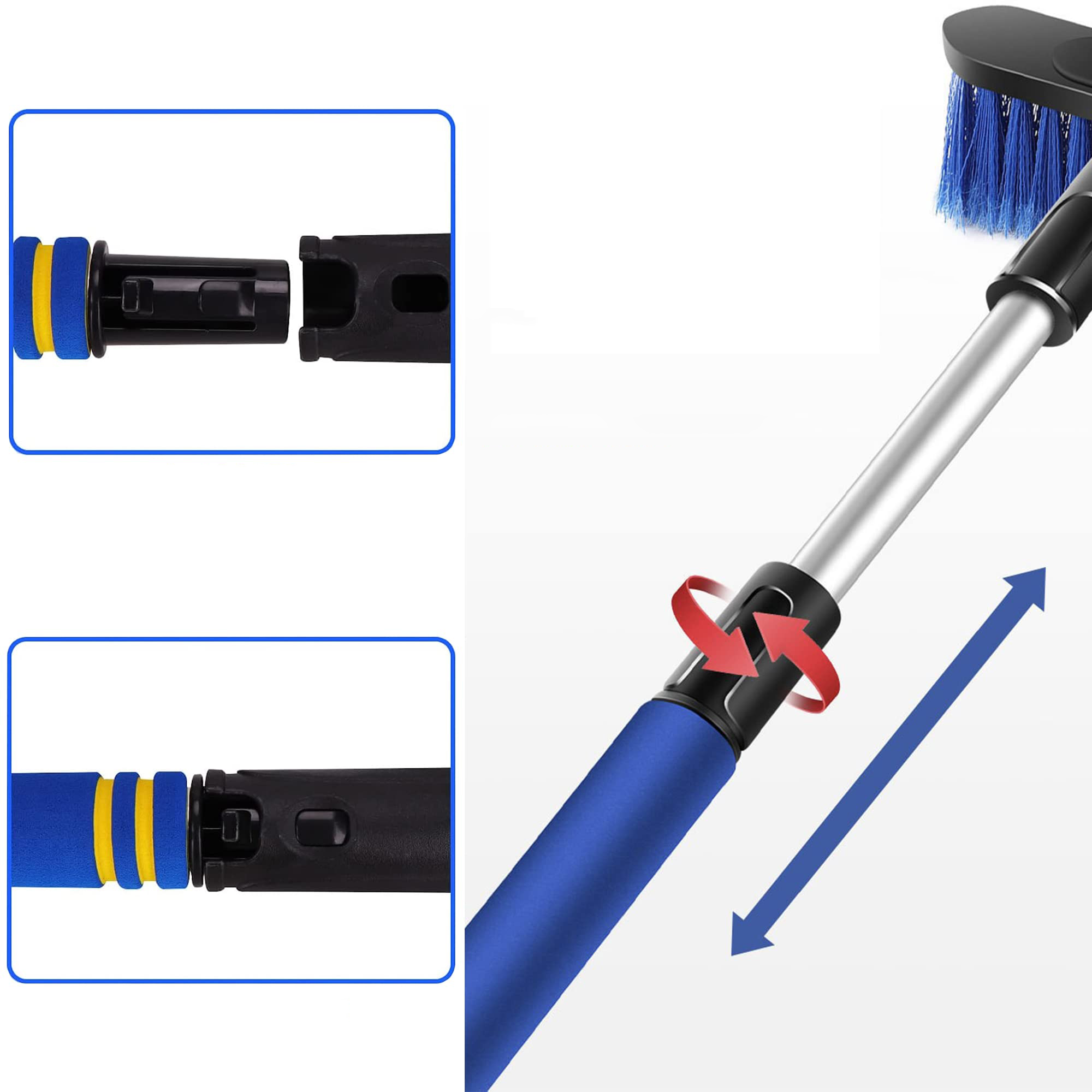 Инструмент сочетает в себе щетку, скребок и телескопическую штангу. В зависимости от ваших потребностей вы можете быстро переключаться между метлой и скребком - без необходимости тянуться к другим приспособлениям!