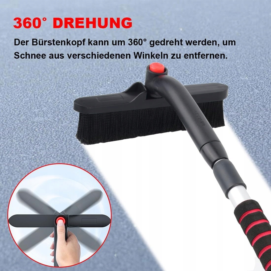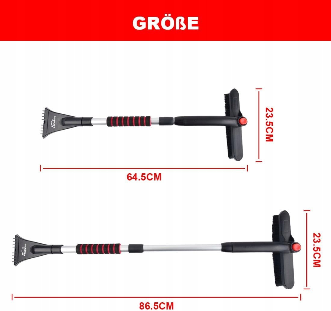 Скребок для льда AUTOJARE 2 в 1, с щеткой, головкой щетки на 360 градусов, расширяемый, съемный скребок для легковых, грузовых автомобилей и внедорожников (красный)