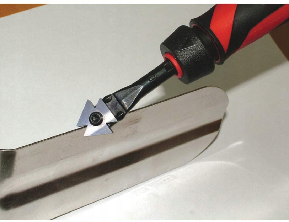 Инструмент для снятия заусенцев можно использовать для обработки листового металла толщиной до 3 мм. Благодаря своей структуре он одновременно удаляет заусенцы с обеих кромок листового металла. Инструмент также подходит в качестве скребка для поверхностей листового металла.