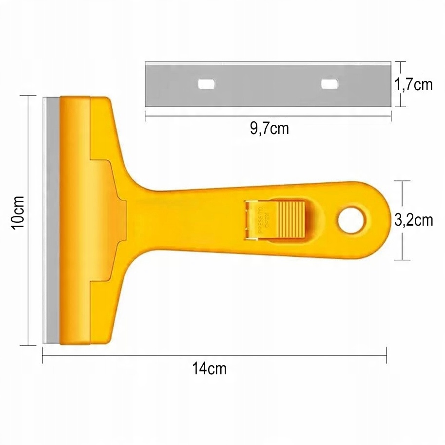 Скребок для стекла используется для удаления сложных загрязнений с различных поверхностей. Он в основном предназначен для соскабливания краски, клея, лаков и затирок. Он состоял из двух элементов – рукояти и клинка. Первый изготовлен из прочного пластика, второй – из острой стали. Кроме того, если лезвие затупится или повредится, его можно будет легко заменить на новое.