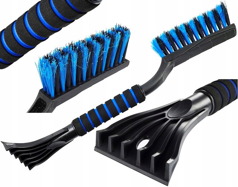 - Универсальный инструмент для подготовки автомобиля к зиме. С помощью скребка можно удалить лед со стекол, а затем очистить автомобиль от снега или другой грязи щеткой с другой стороны.