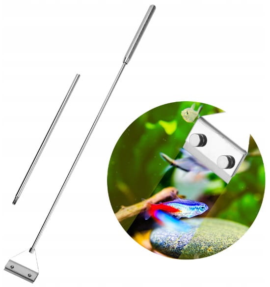 Большой скребок высочайшего качества из нержавеющей стали. Он позволяет чистить аквариумное стекло, не намочая руки. Можно использовать как в пресной, так и в соленой воде.
