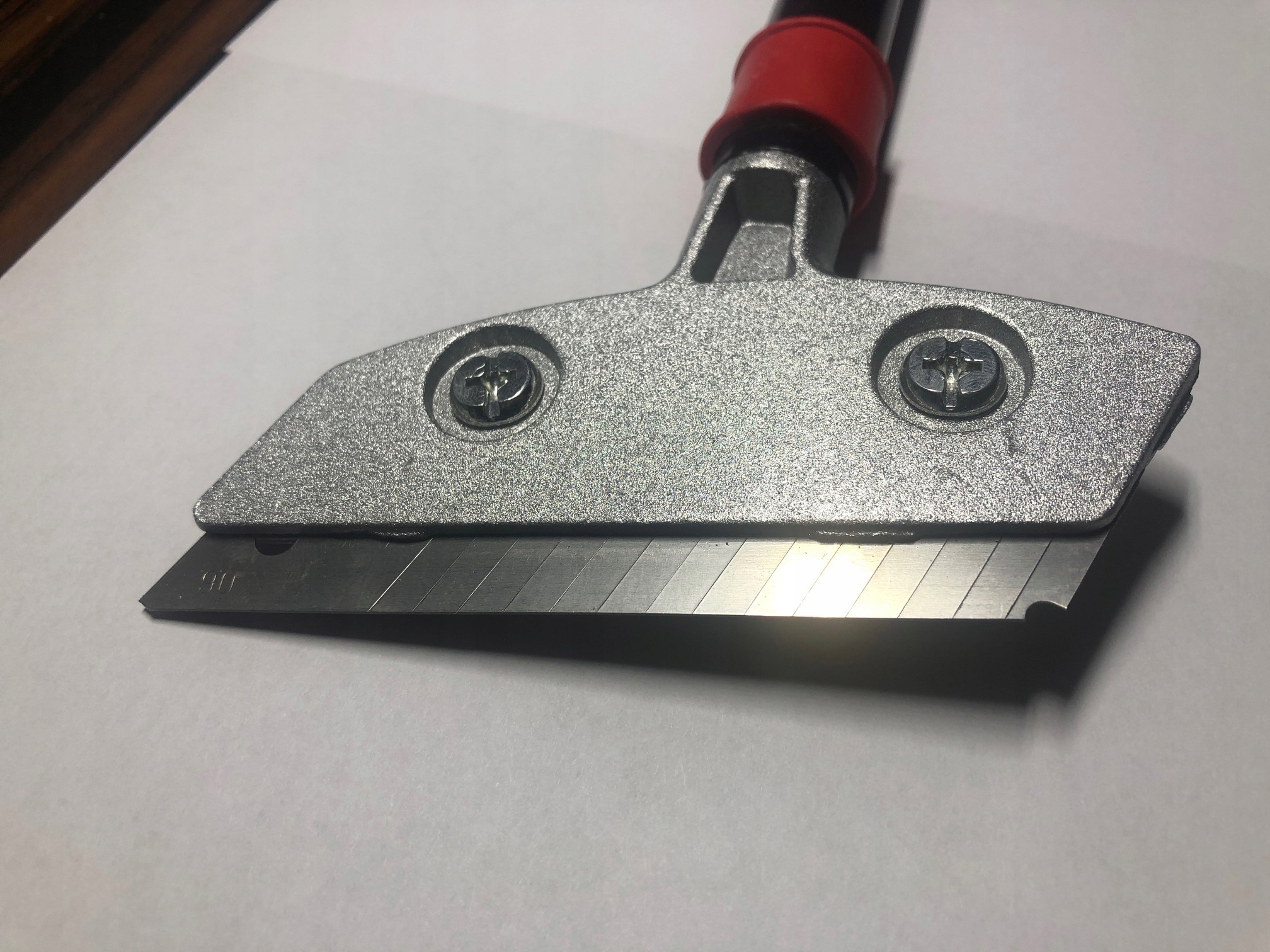 - острая часть используется для удаления краски с твердых и гладких поверхностей, таких как как: стекло, керамика, плитка,