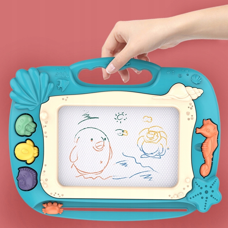 Магнитная доска Znikopis от бренда WOOPIE дает вам возможность долго и творчески развлекать! Доска поощряет вас писать и рисовать. Рисование поможет сконцентрироваться, успокоиться и успокоить ребенка. Scribble позволяет создавать бесконечное количество картинок — просто переместите специальный ползунок, и рисунок исчезнет, и вы сможете рисовать снова! В набор также входят удобная ручка и штампы, которые разнообразят работу. Доска имеет удобную ручку, поэтому ребенок сможет брать ее куда угодно. Описание будет развивать у ребенка мануальные способности, воображение, творческие способности и даст возможность развиваться художественная >детская сторона!
