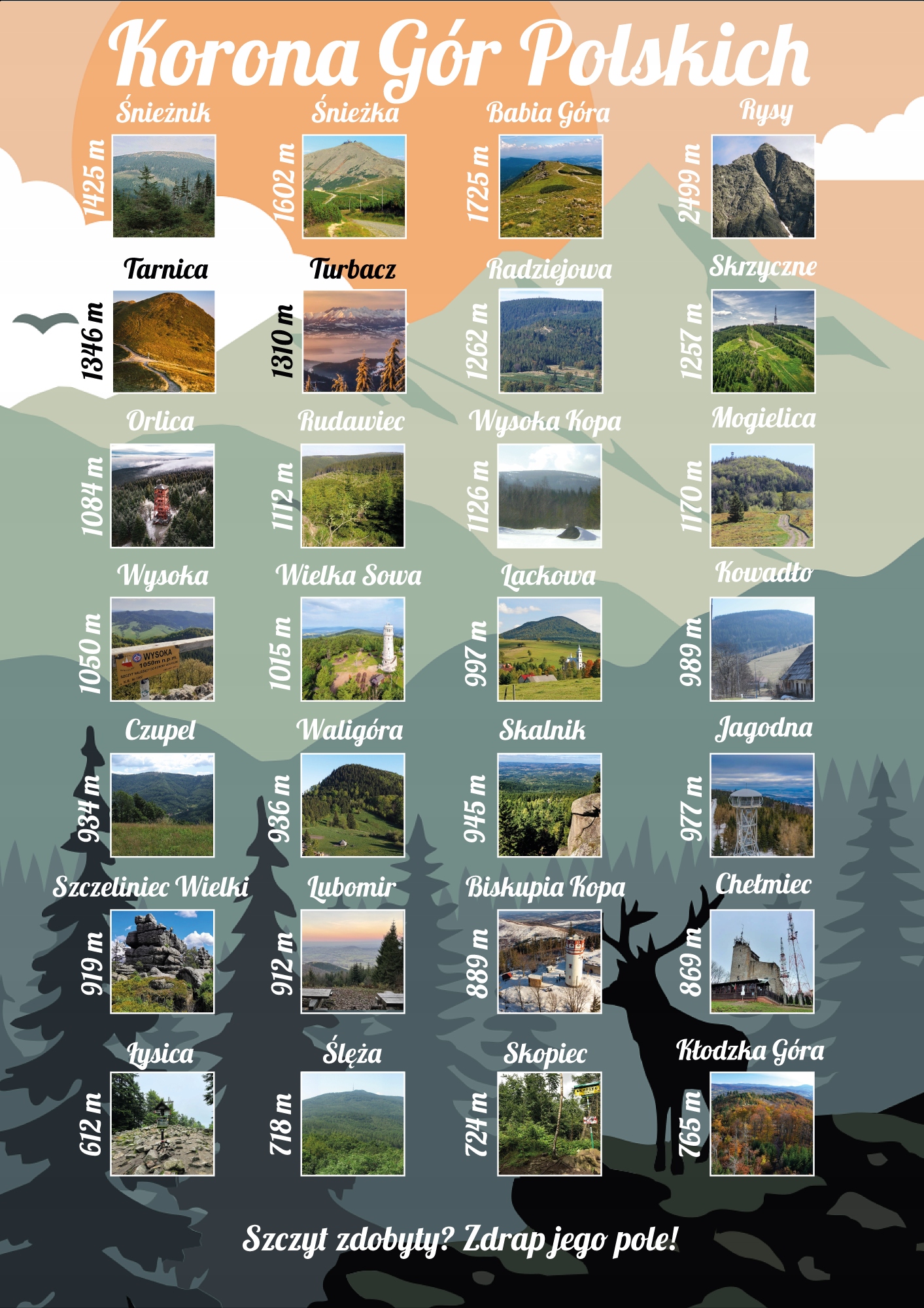Оригинальная идея подарка для всех, кто любит ходить в горах и завоевать топы! Пики короны польских гор! Задача короны польских горов составляет 28 пиков, что одно за другим означает выполнение вызов. Эта задача часто является целью, которая должна быть выполнена для каждого альпиниста :)