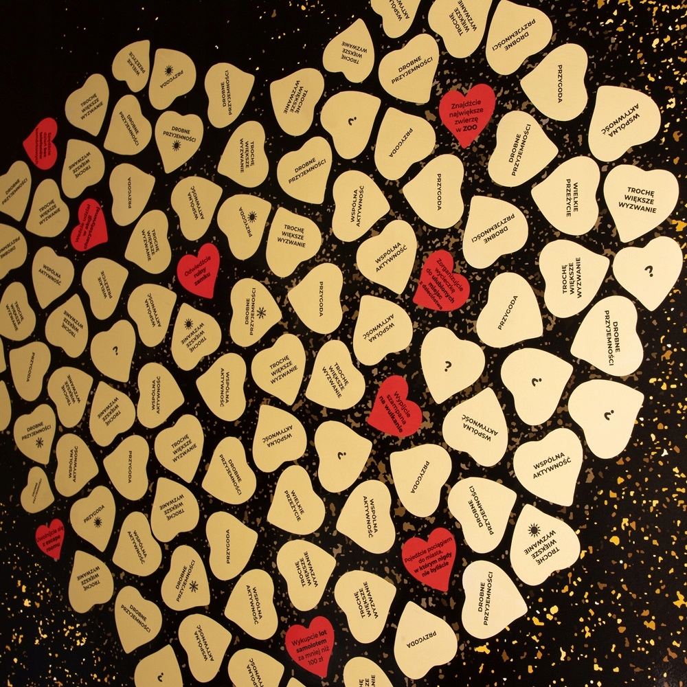 - каждое поле в форме сердца — отдельный сюрприз для пары.