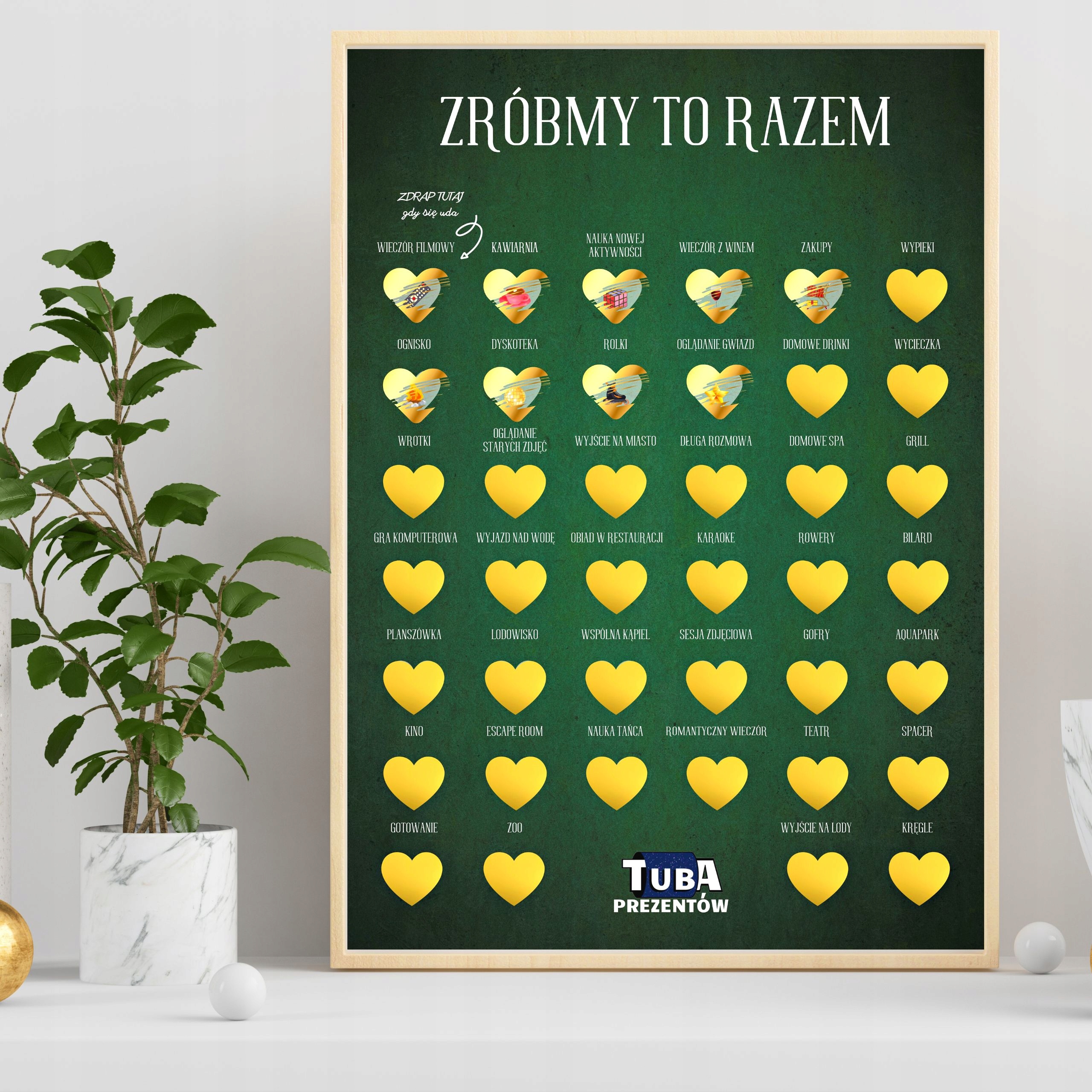 Скретч-постер — это глянцевый постер с персонализированными текстами или заданиями, которые нужно выполнить, спрятанными под золотой скретч-картой.