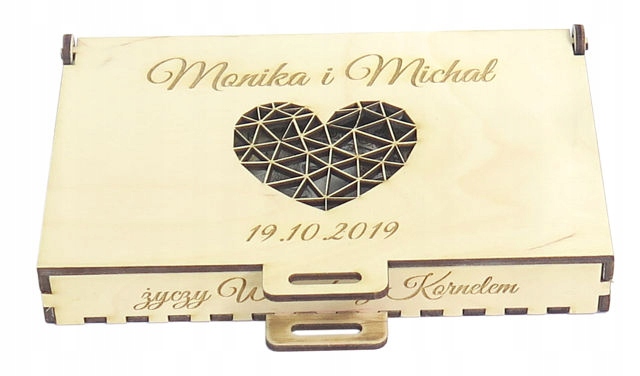 В рамках аукциона вы должны предоставить имена и дату, выгравированные на крышке — в примере: Моника и Михал, 19 октября 2019 г., а также содержание, выгравированное на лицевой стороне. - в примере это: пожелания Веронике и Корнелю