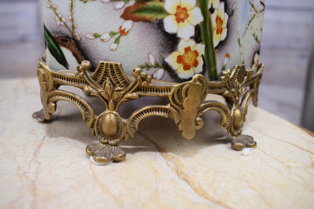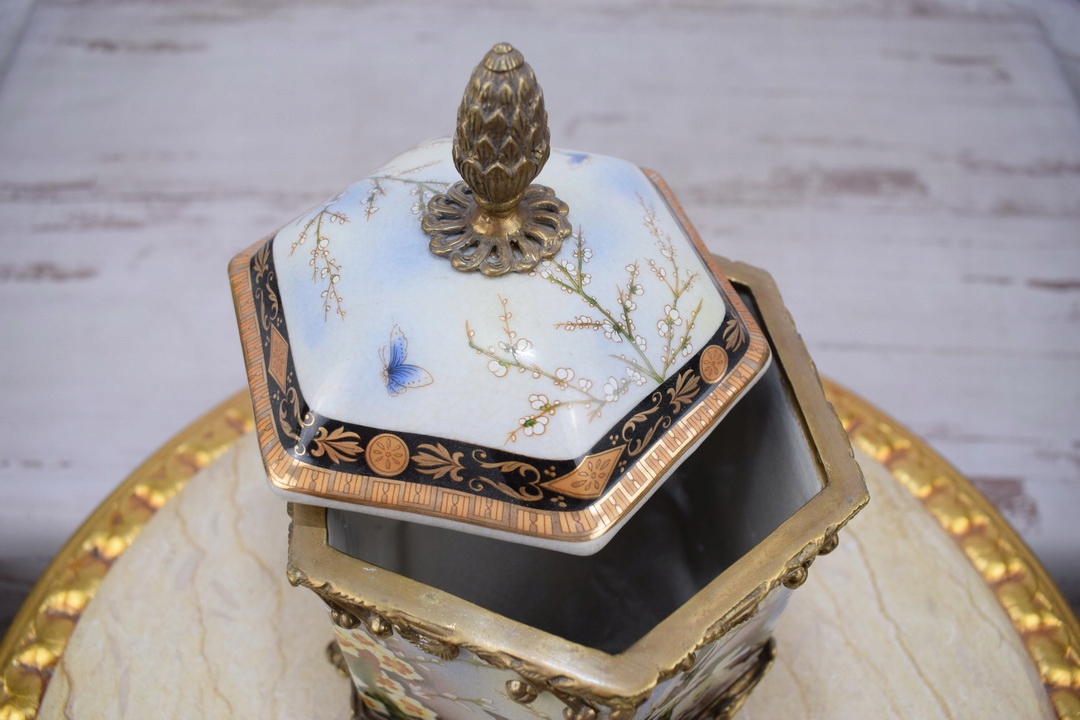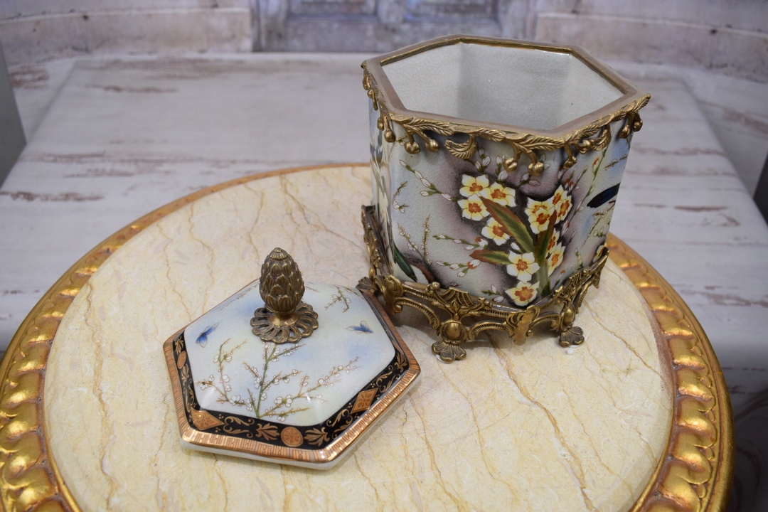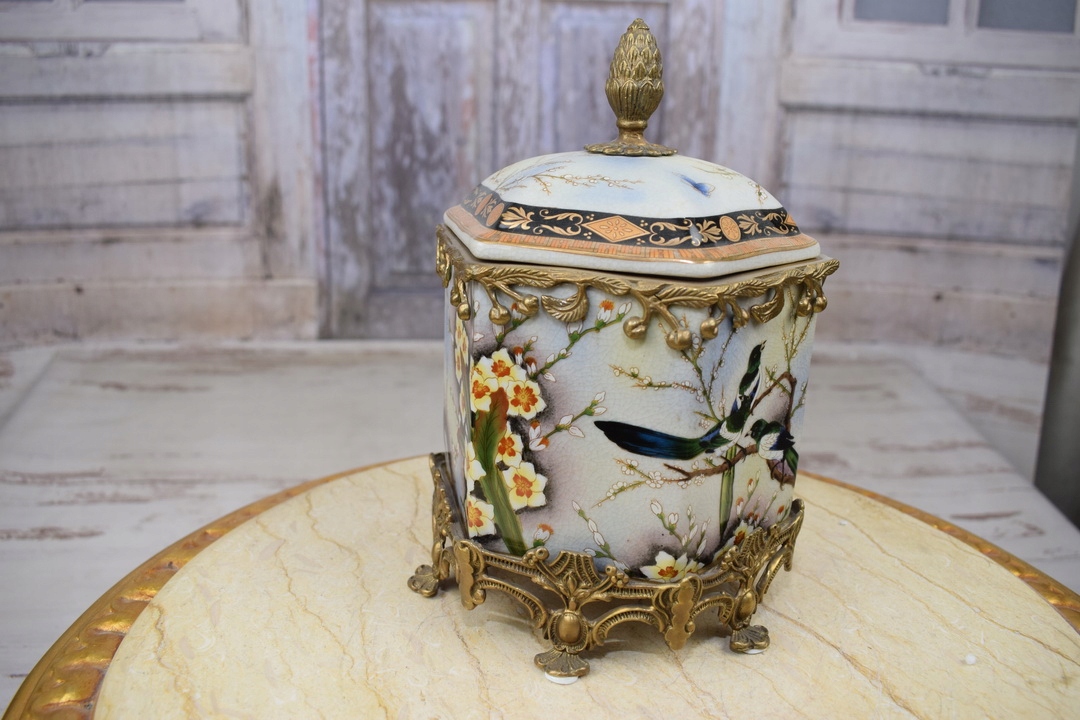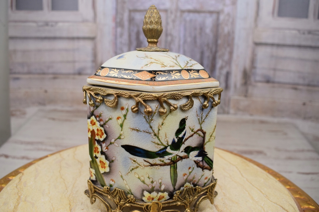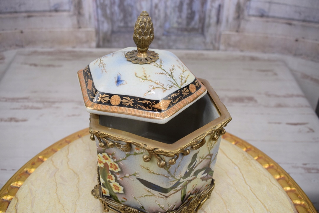 Скринька бомбоньєра в стилі модерн - порцеляна + бронзова скульптура птахів - гірлянди