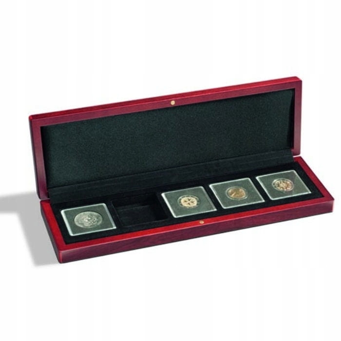 Представляем вам элегантную шкатулку для хранения монет Держатели и колпачки QUADRUM от LEUCHTTURM. Коробка подошла идеально он представляет и добавляет очарования хранящимся в них ценностям. Подходит до 5 монеты на одном уровне.