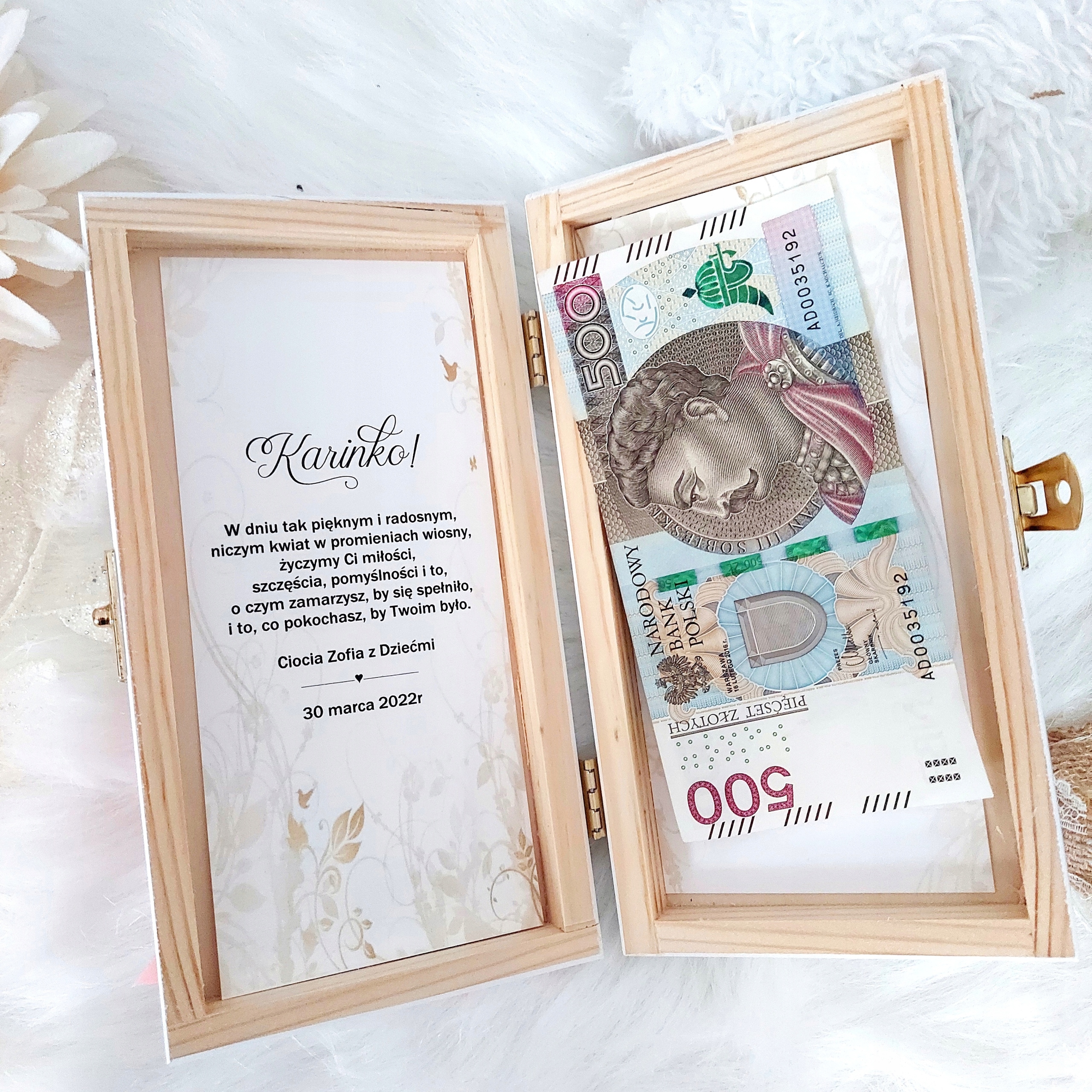 Индивидуальные пожелания в деревянной коробке с местом для денег .