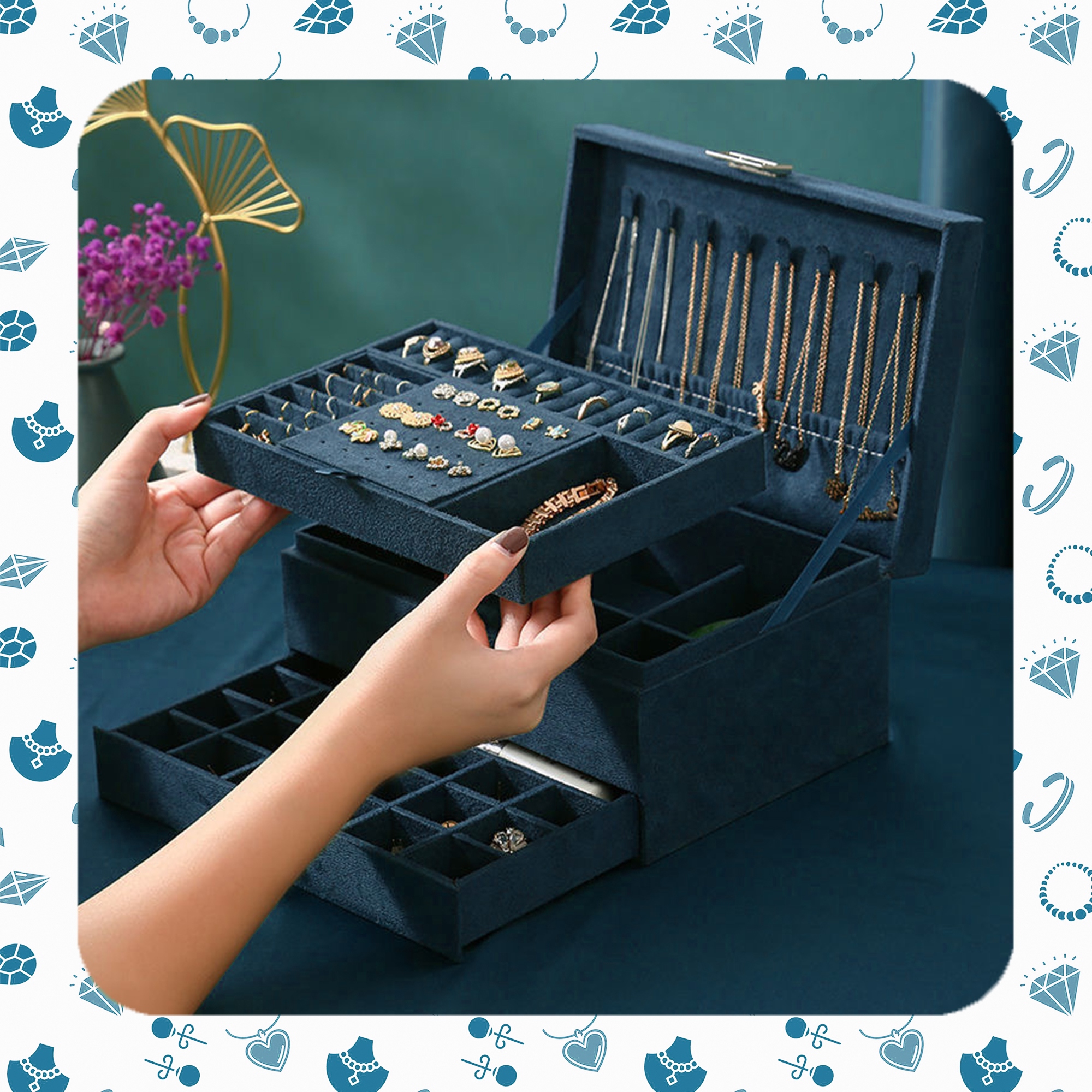 ⭐Премиум-материал: Замшевый обивочный материал придает шкатулке мягкий и роскошный вид, одновременно защищая украшения от царапин. .
