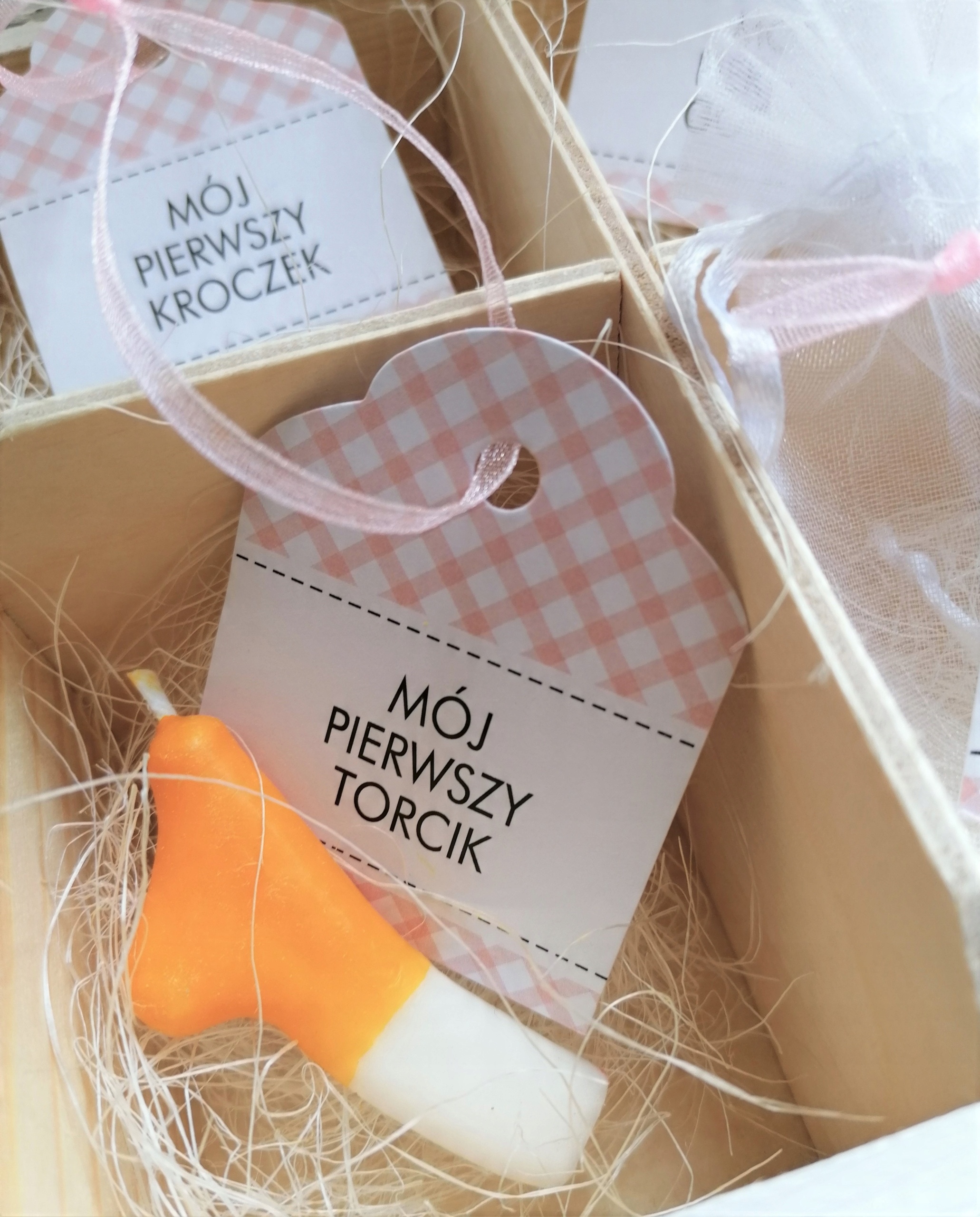 Кроме того, внутри лежат 2 белых тюлевых мешочка для первого зуба и первой пряди волос.
