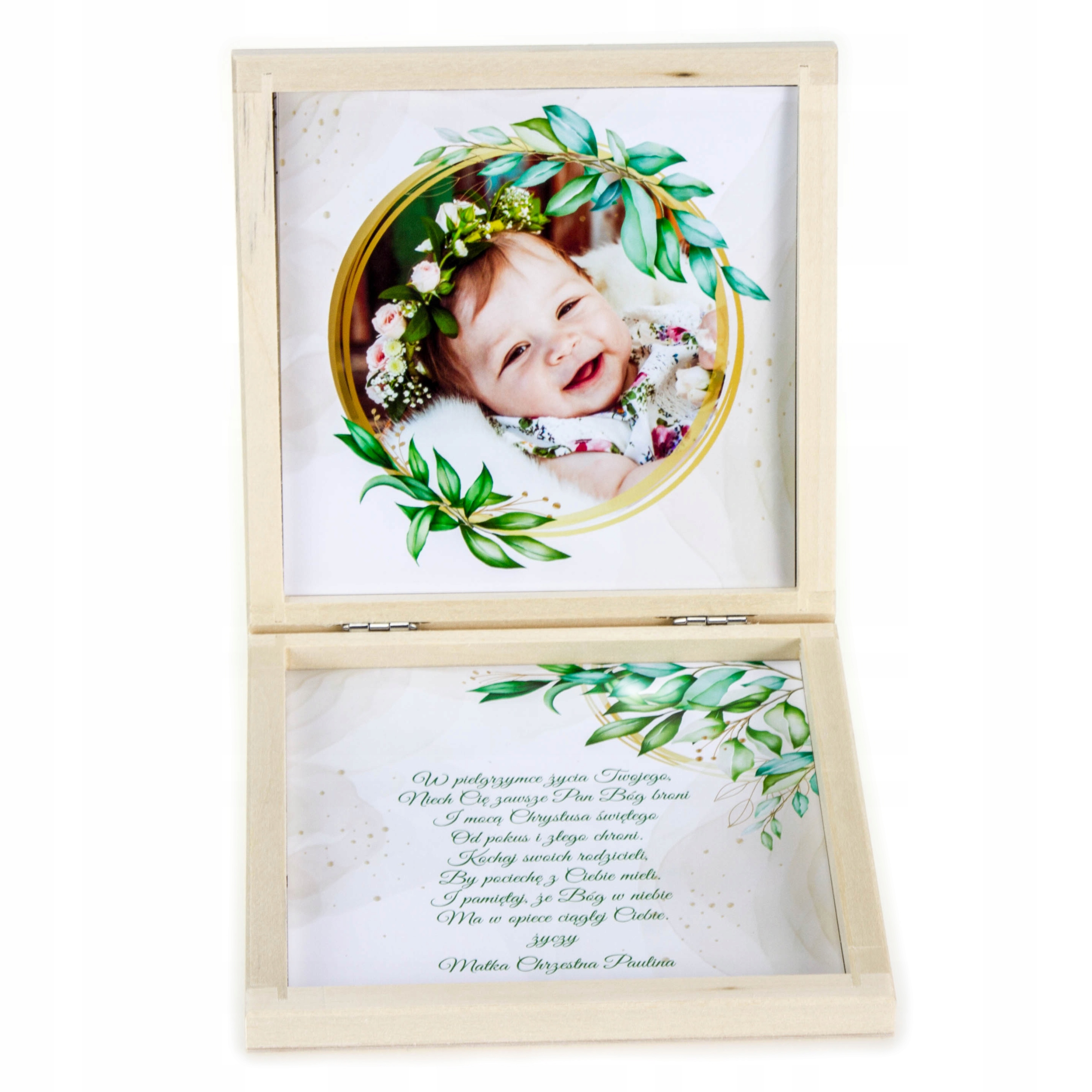 Оригинальный сувенир Святого Крещения, помещенный в деревянную шкатулку.