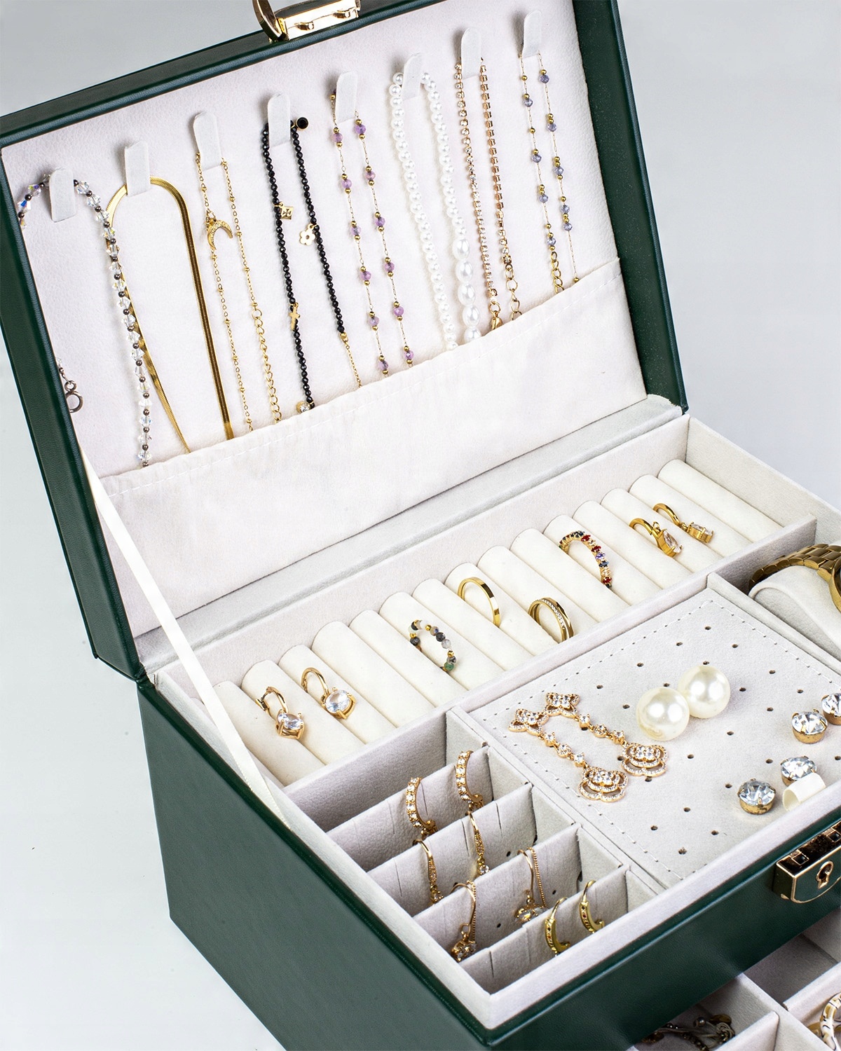 ✅Многофункциональность - многочисленные отделения, ящики и ручки позволяют хранить различные виды украшений в одном месте.