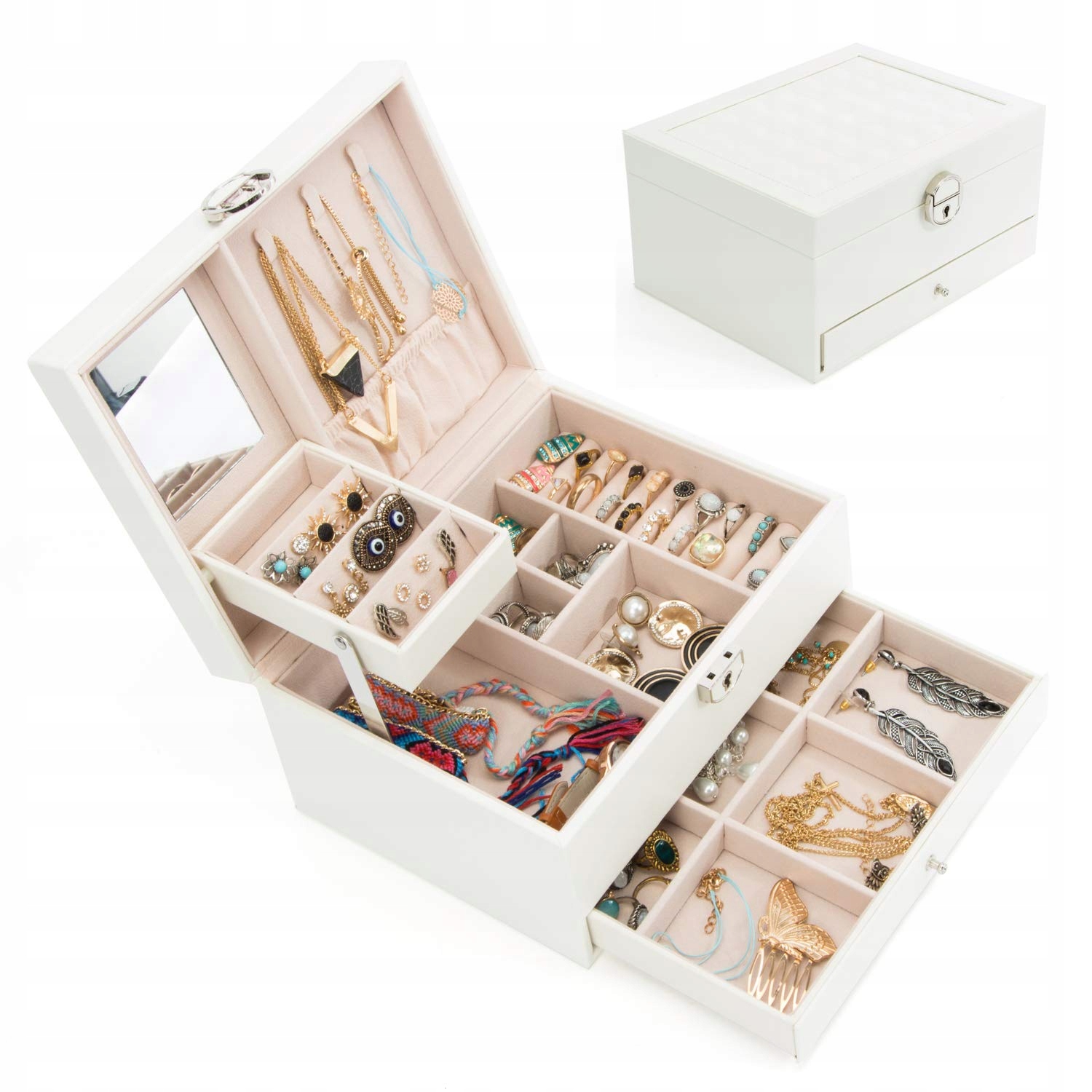 Шкатулка, благодаря 2 уровням, вмещает множество украшений. Идеально подходит в качестве домашнего органайзера и демонстрации ювелирных изделий. Небольшой размер сэкономит вам место.