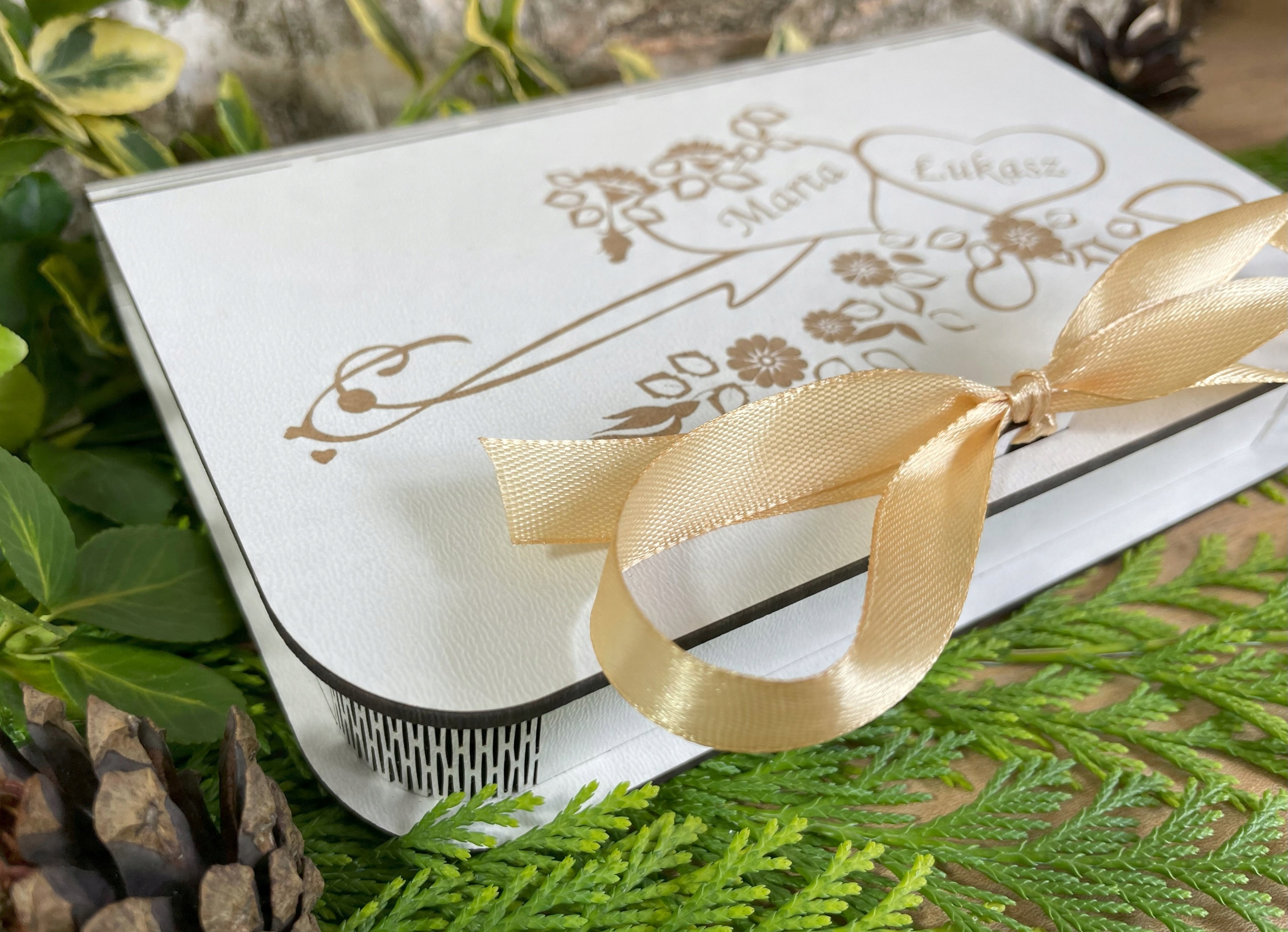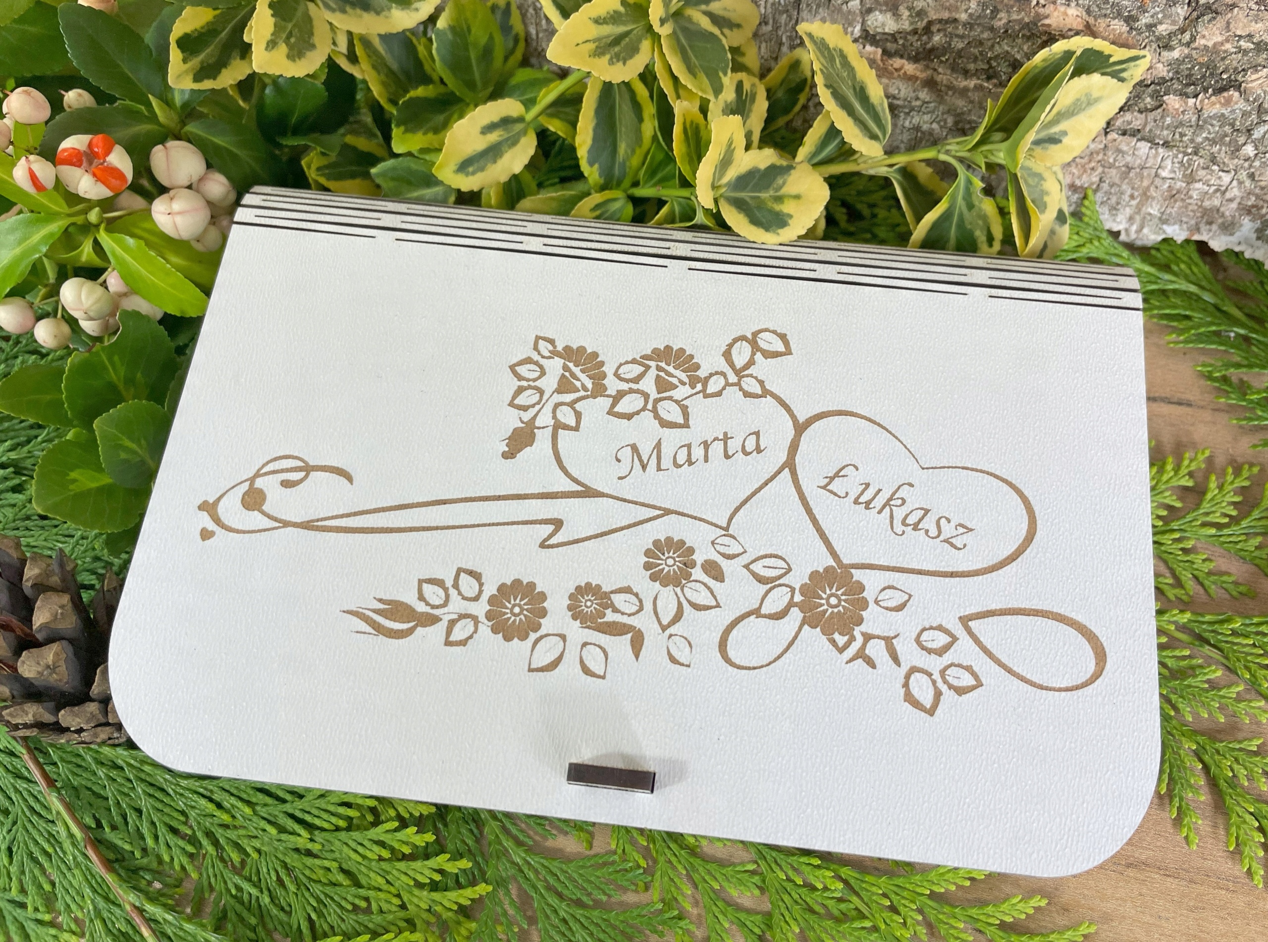 ДЕНЕЖНАЯ КОРОБКА СВАДЕБНЫЙ ПОДАРОК с гравировкой Белый