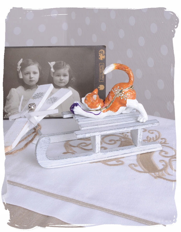 Оранжевая металлическая шкатулка Фаберже с котом Руди