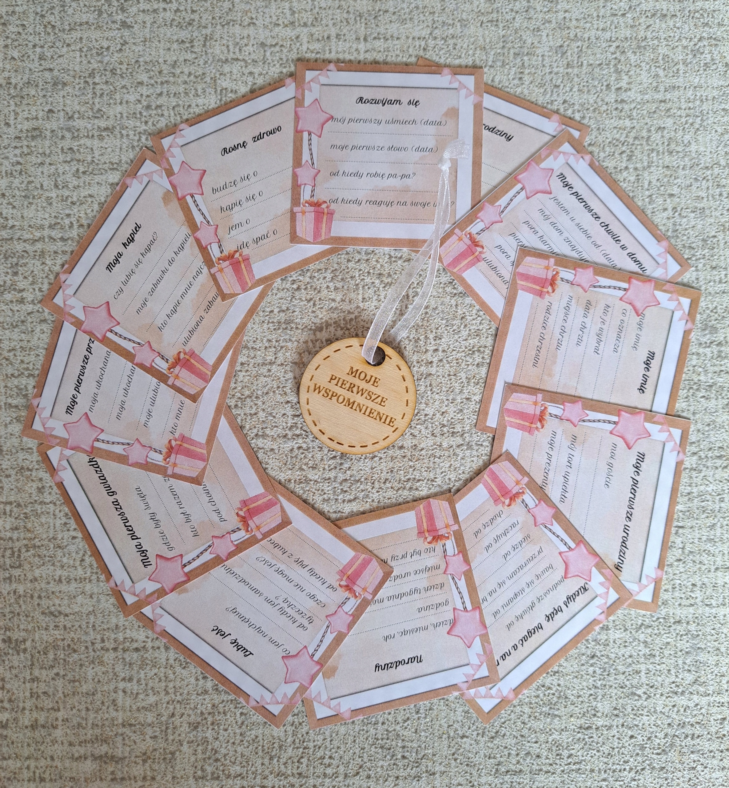 4. набор из 12 карточек для заполнения родителями, которые отмечают первые моменты и развитие ребенка