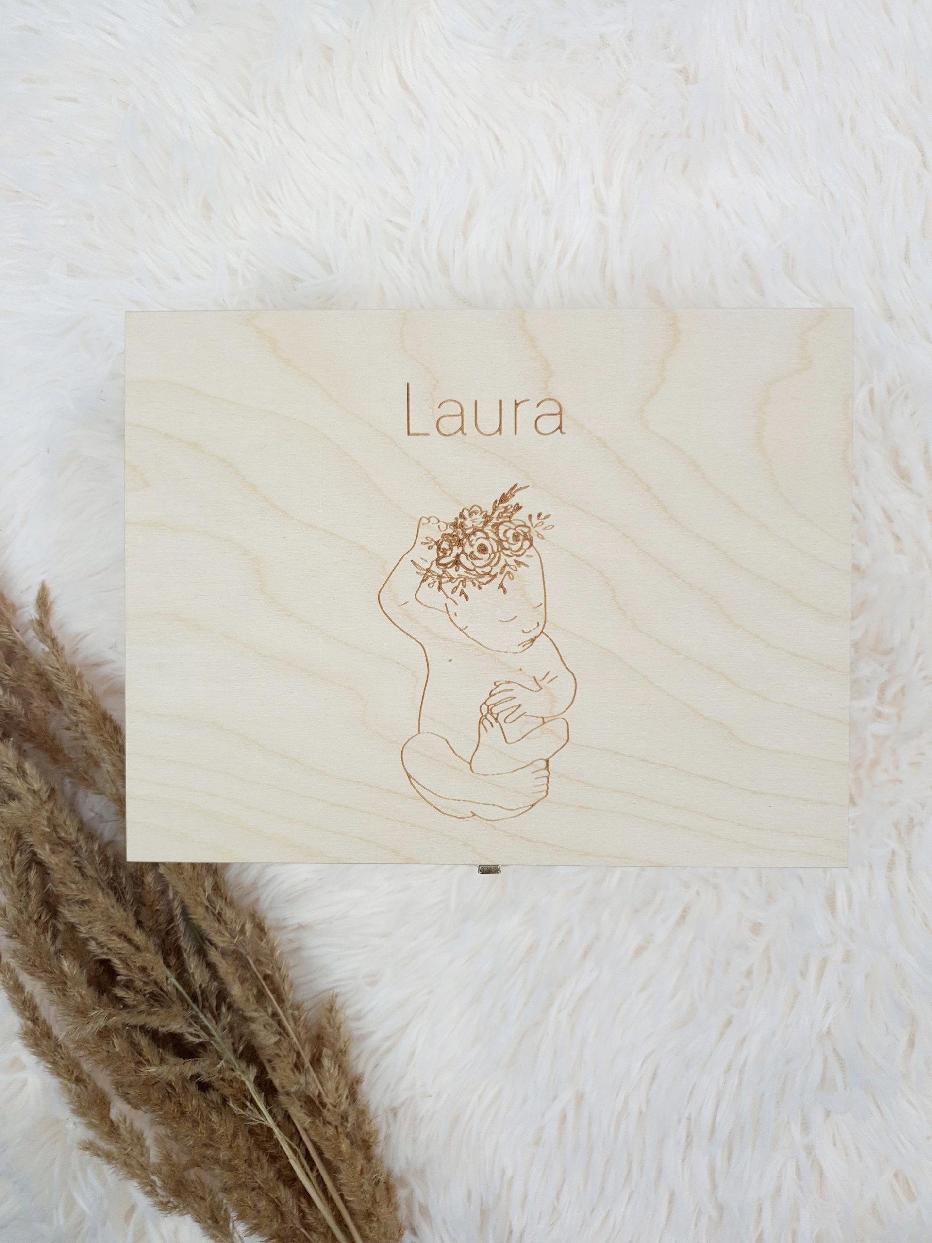 Каждое свидетельство о рождении изготавливается вручную в цифровой форме, а затем выгравируется на элегантной коробке.