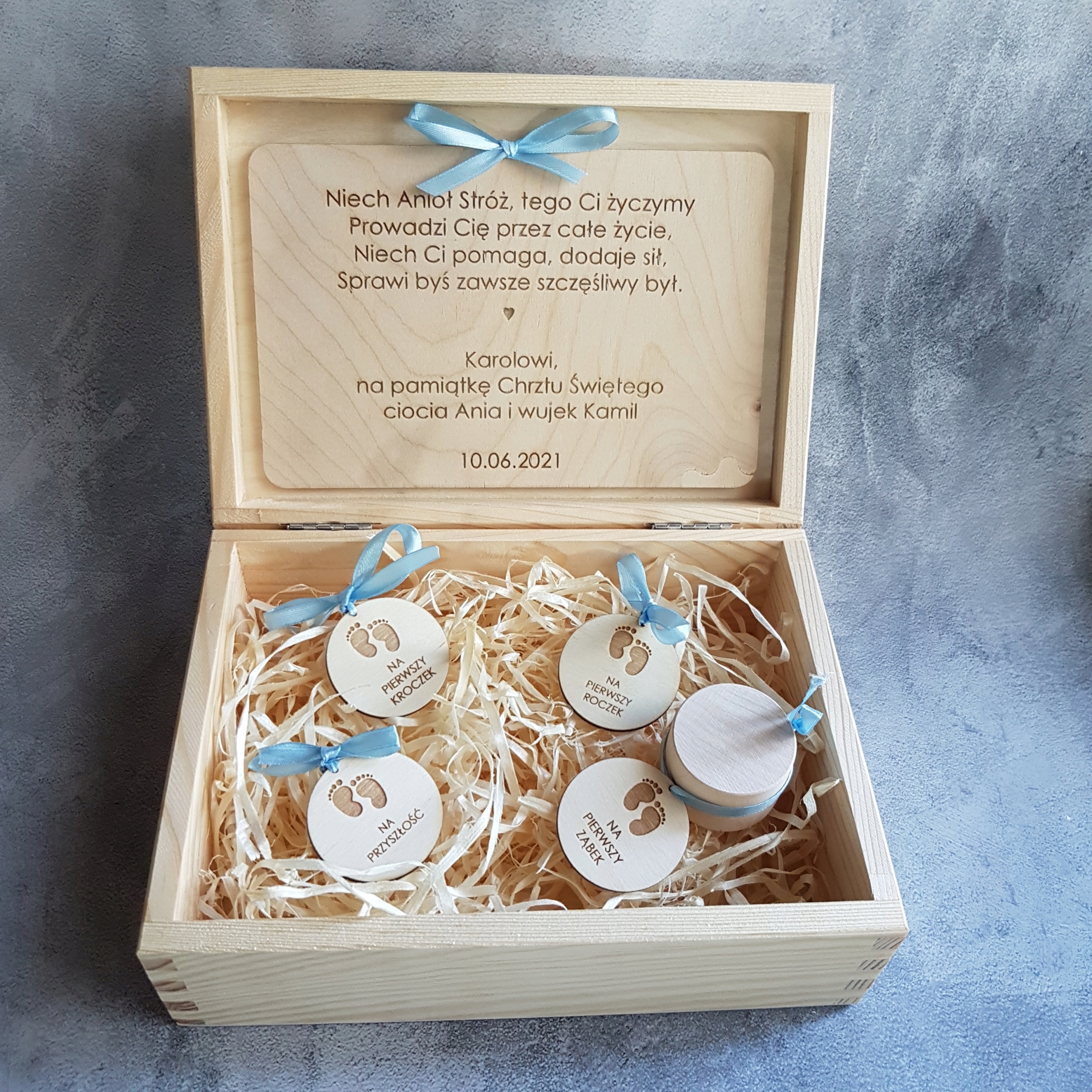Вместо свидетельства о рождении можно поставить надпись, например Мой первый год, Коробка воспоминаний или сувенир на Крещение. - (Написать в сообщении.)