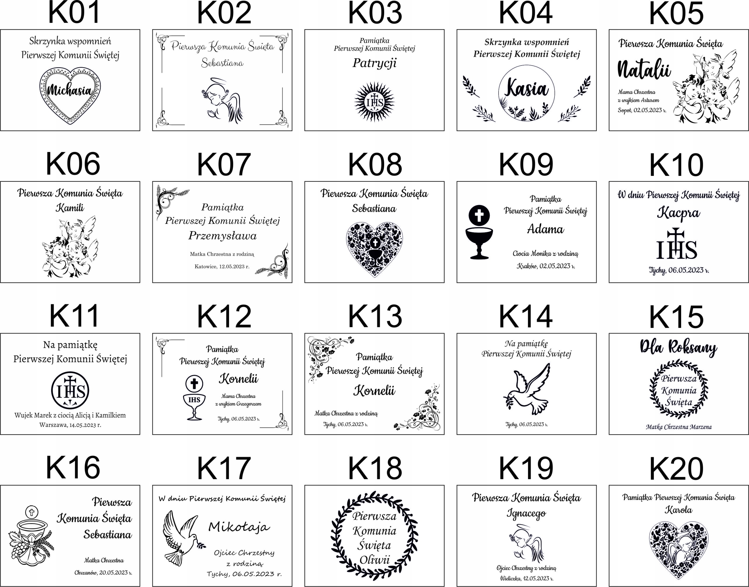 Именная деревянная шкатулка, идеальна в качестве подарка к Первому причастию. В нем можно хранить фотографии и другие сувениры, посвященные особым моментам.