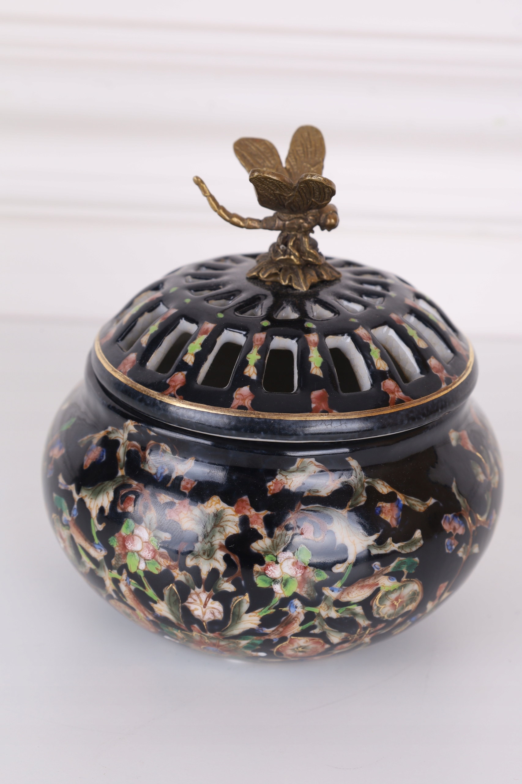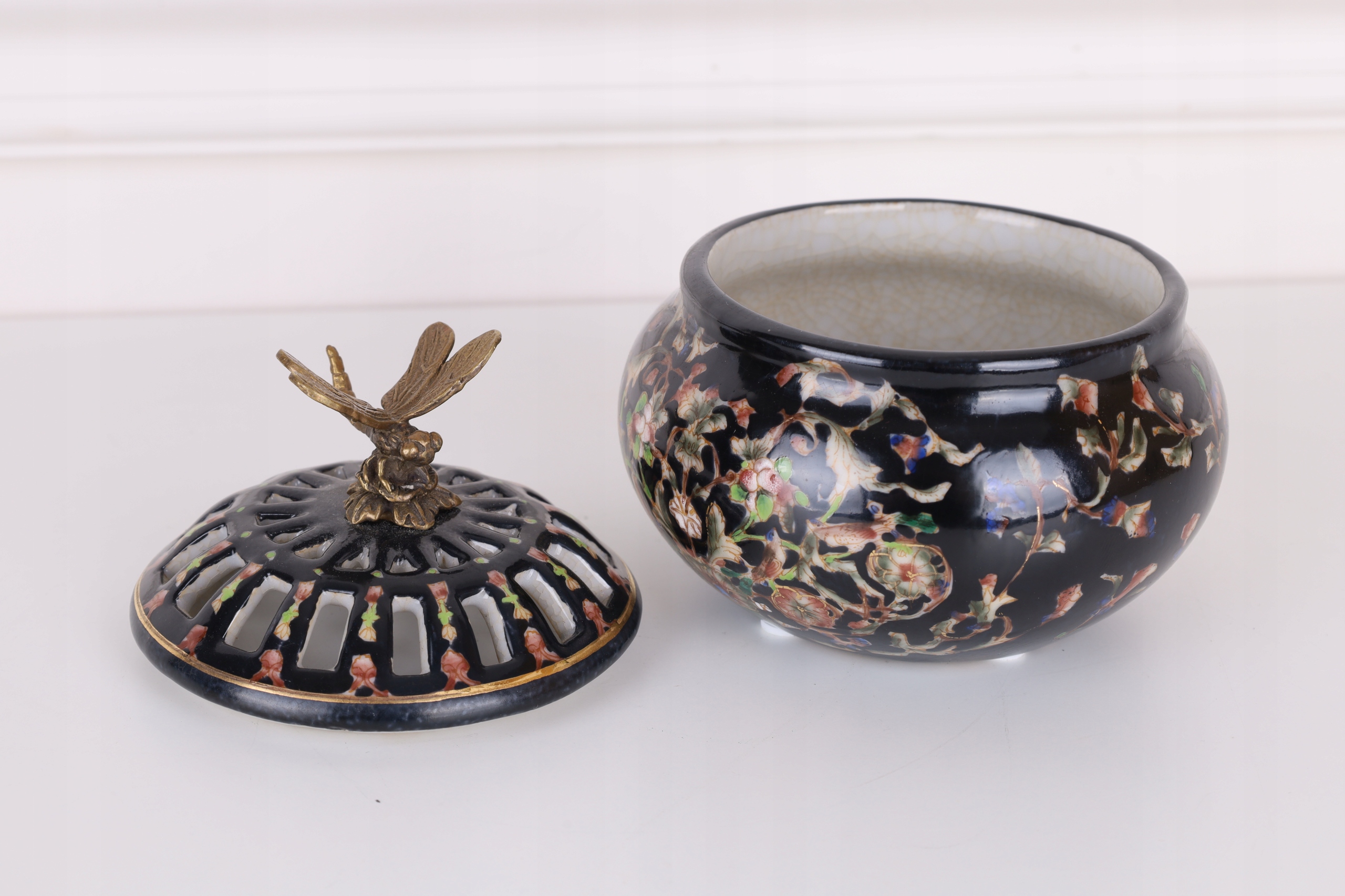 - Фарфоровая шкатулка, украшенная элементами бронзы.