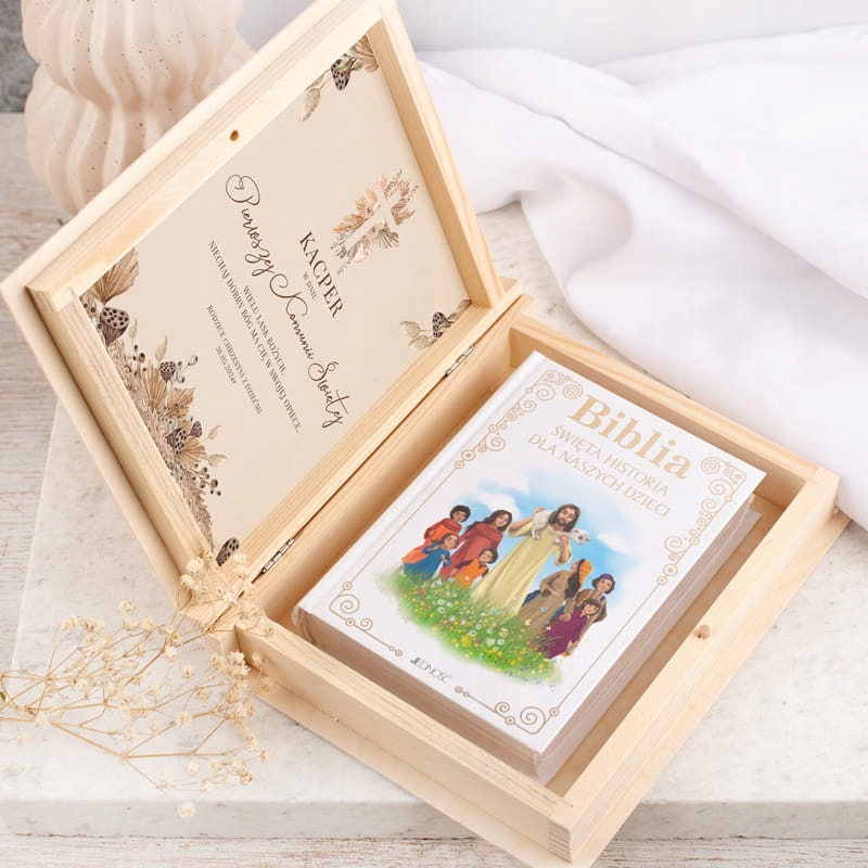 Скринька з біблійним сувеніром Першого Святого Причастя Бохо