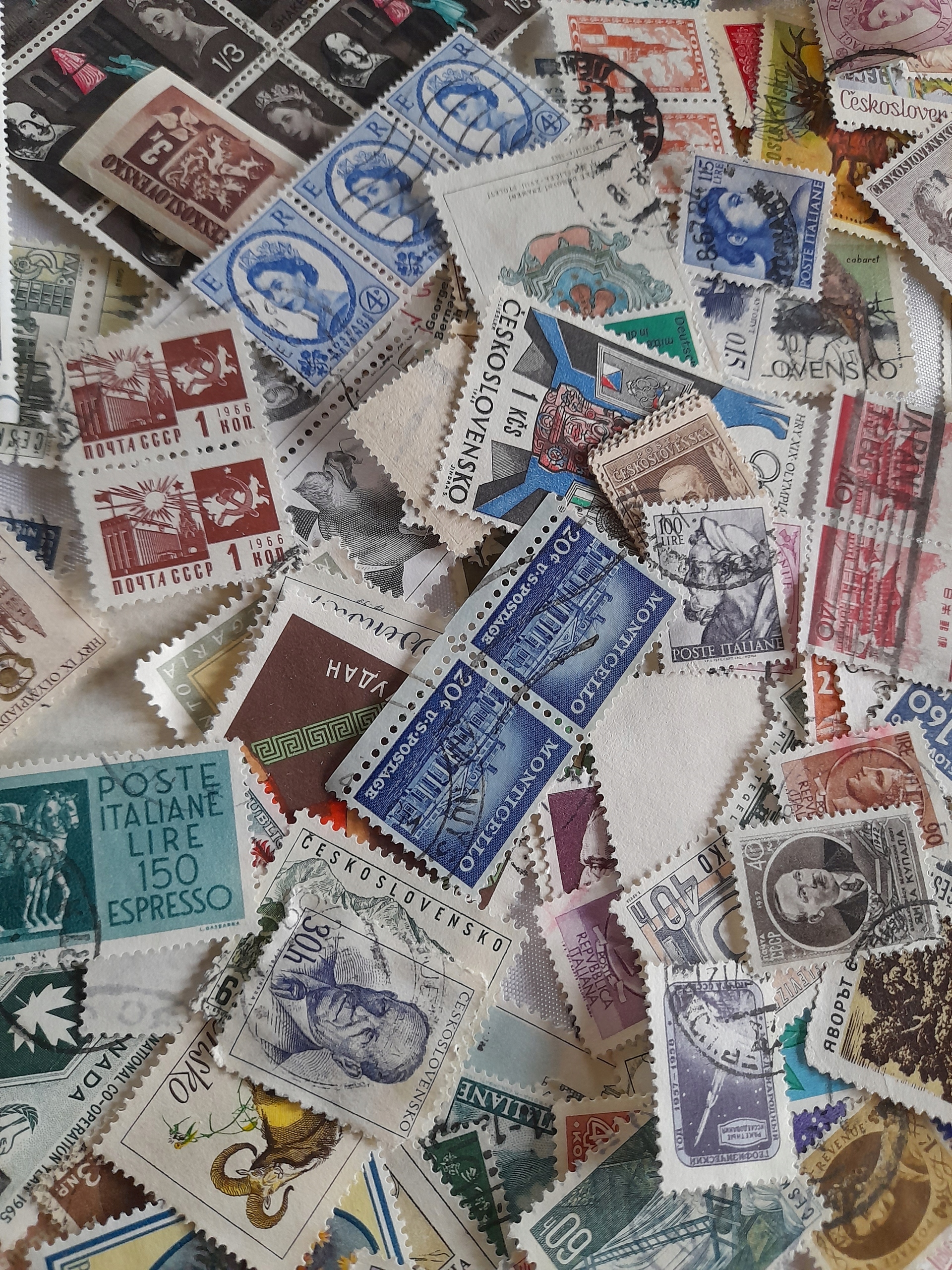 КОРОБКА С МНОГО МАРОК МИРА БЕЗ ВЫРЕЗОК